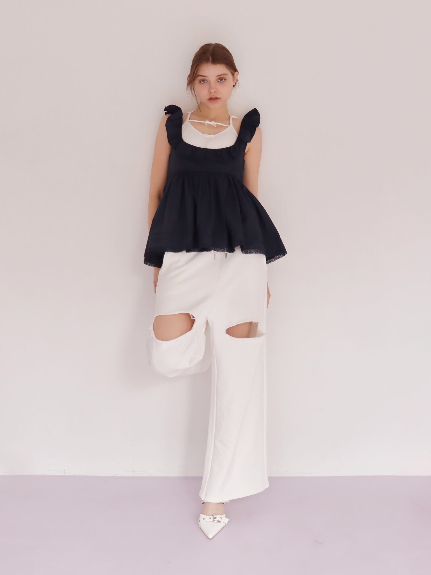 ミニ丈のボトムと合わせて、ガーリーなミニワンピ風に。ロングパンツと合わせれば、甘さと抜け感のバランスが絶妙なレイヤードトップスとしても活躍します。気分に合わせて、様々な着こなしを楽しんでみてください。