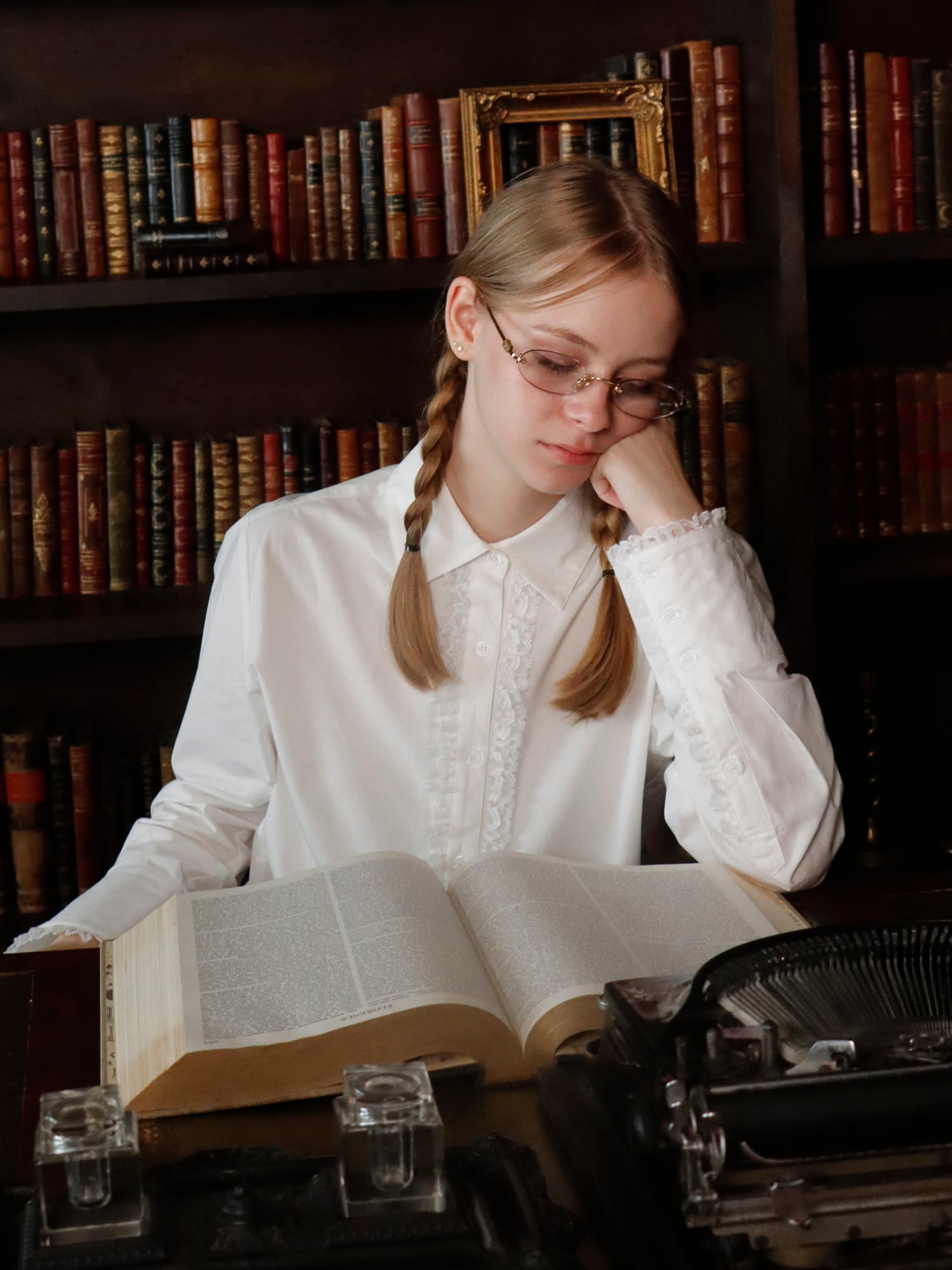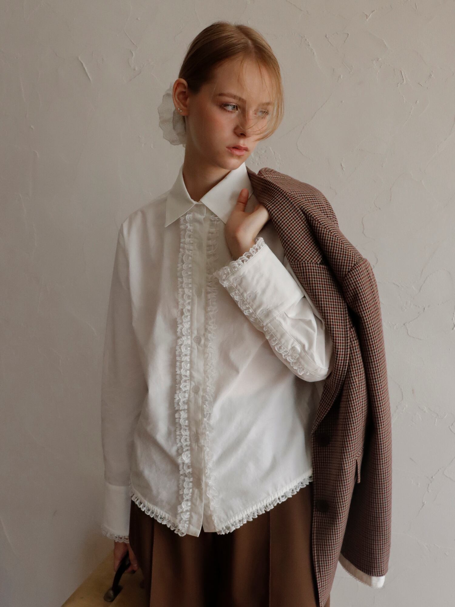 LACE TRIM SHIRTBLOUSE -WHITE-
