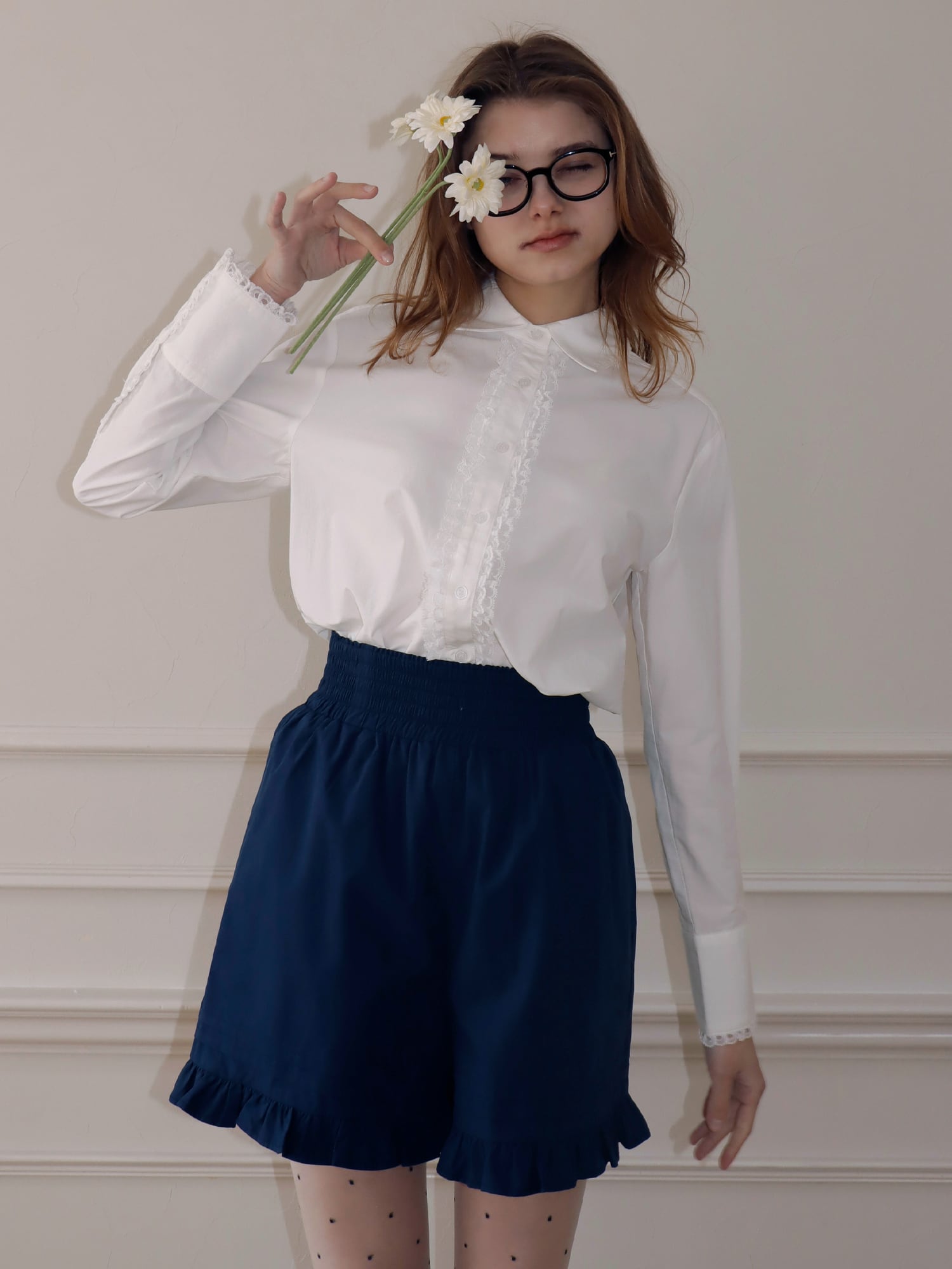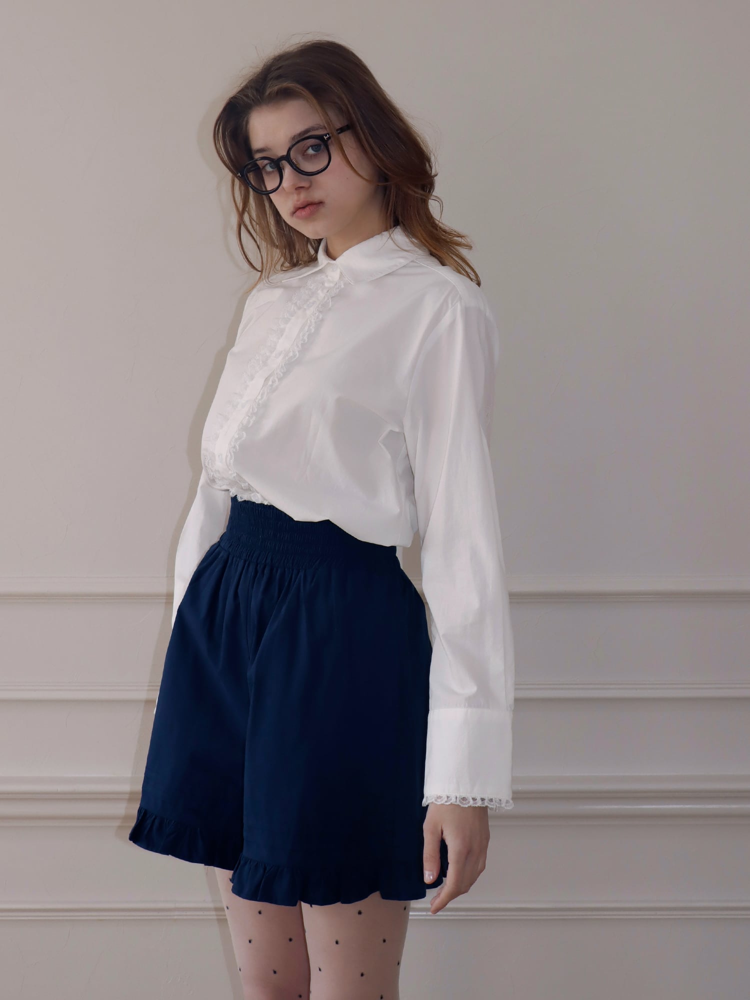 【予約】LACE TRIM SHIRTBLOUSE -WHITE-