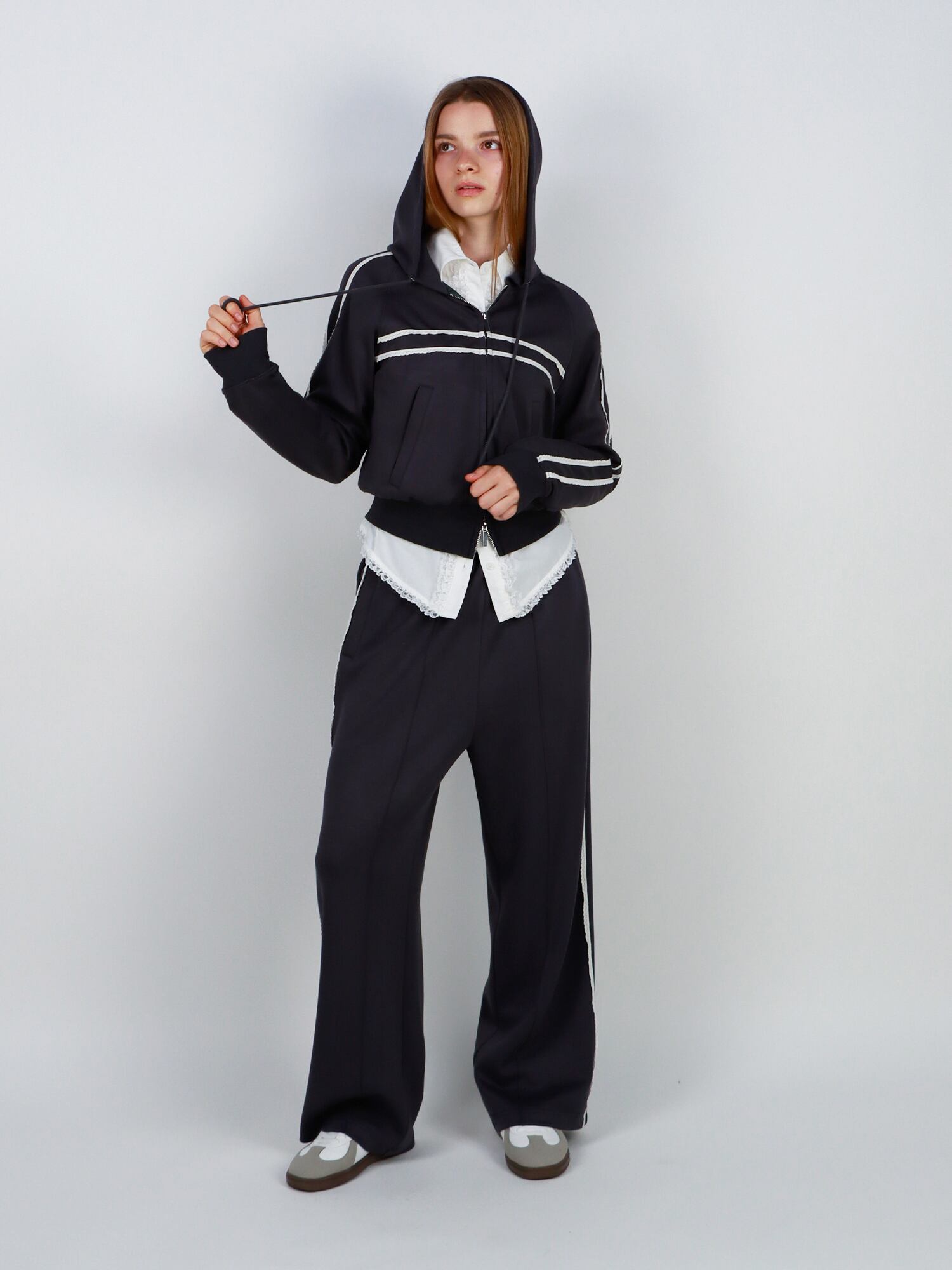 トレンド感と着心地の良さを兼ね備えた、レースライン入りのスウェットパンツ。