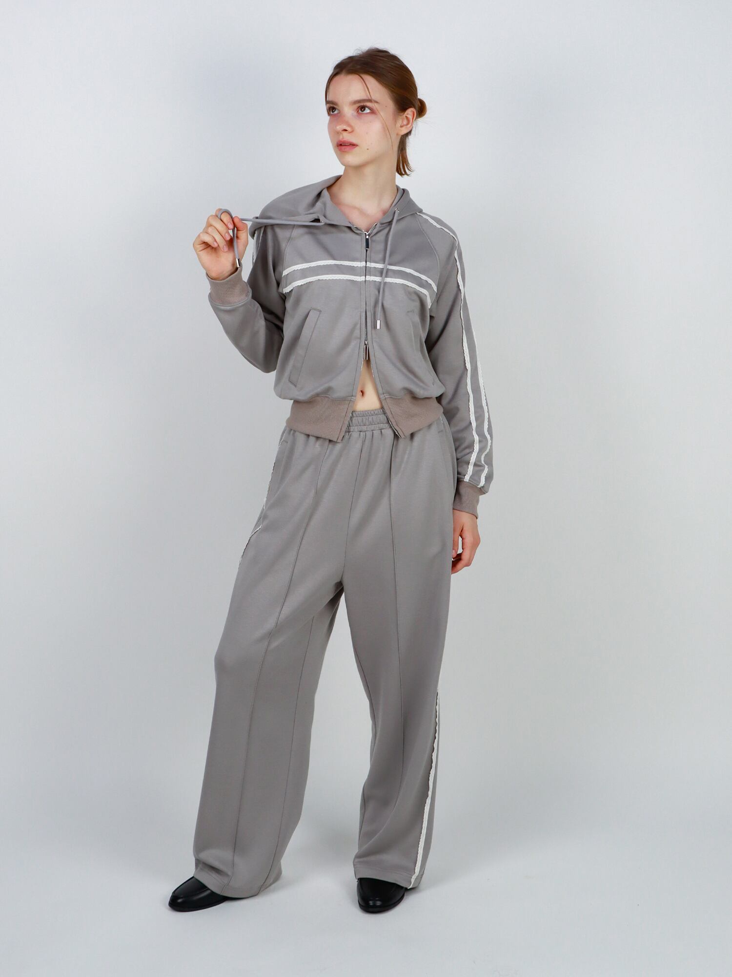 トレンド感と着心地の良さを兼ね備えた、レースライン入りのスウェットパンツ。