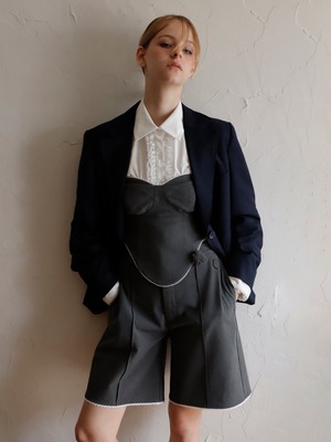特にグレーは、同素材・同レースで仕立てたハーフパンツと合わせることで、セットアップとして着用可能です。