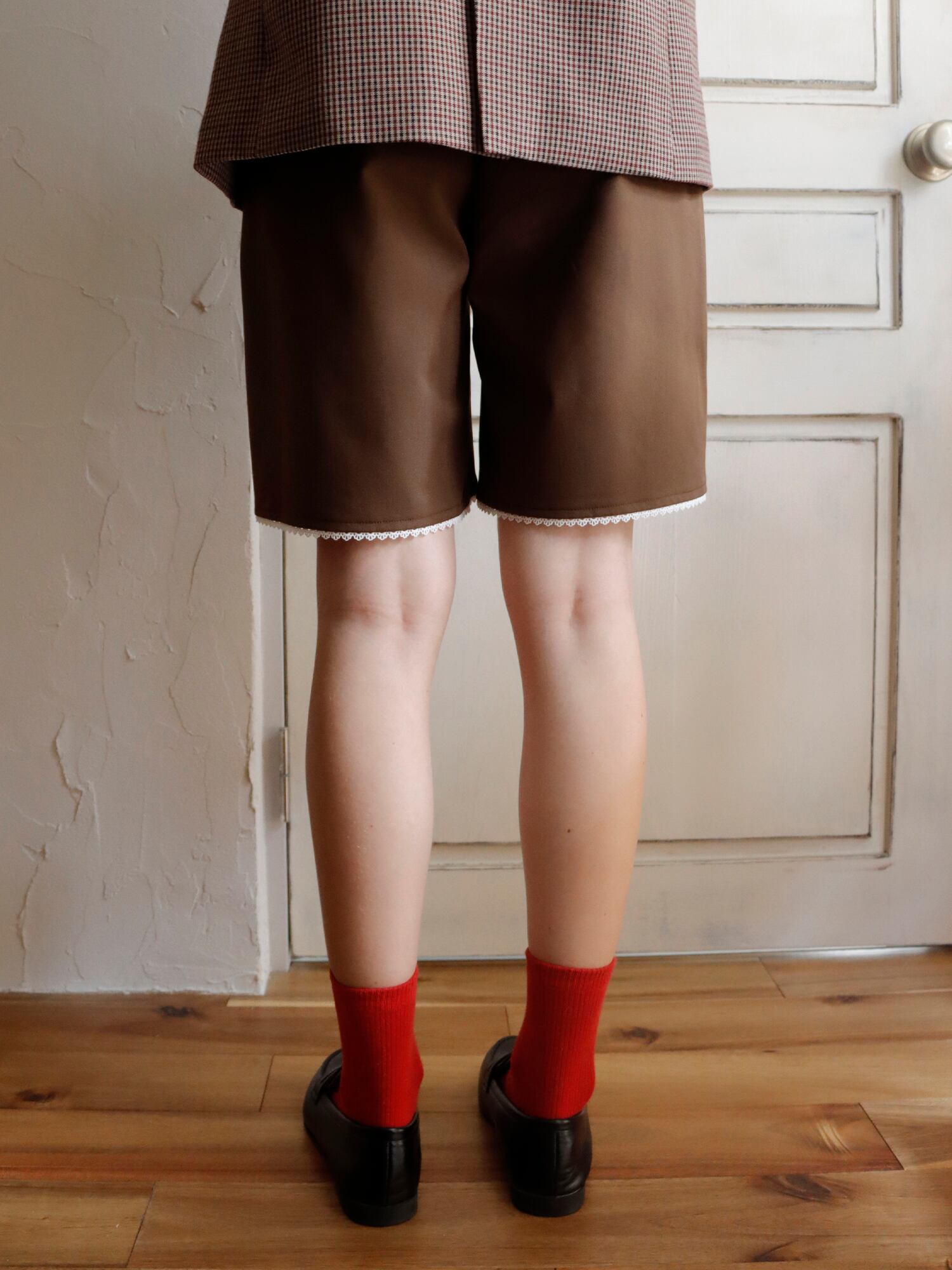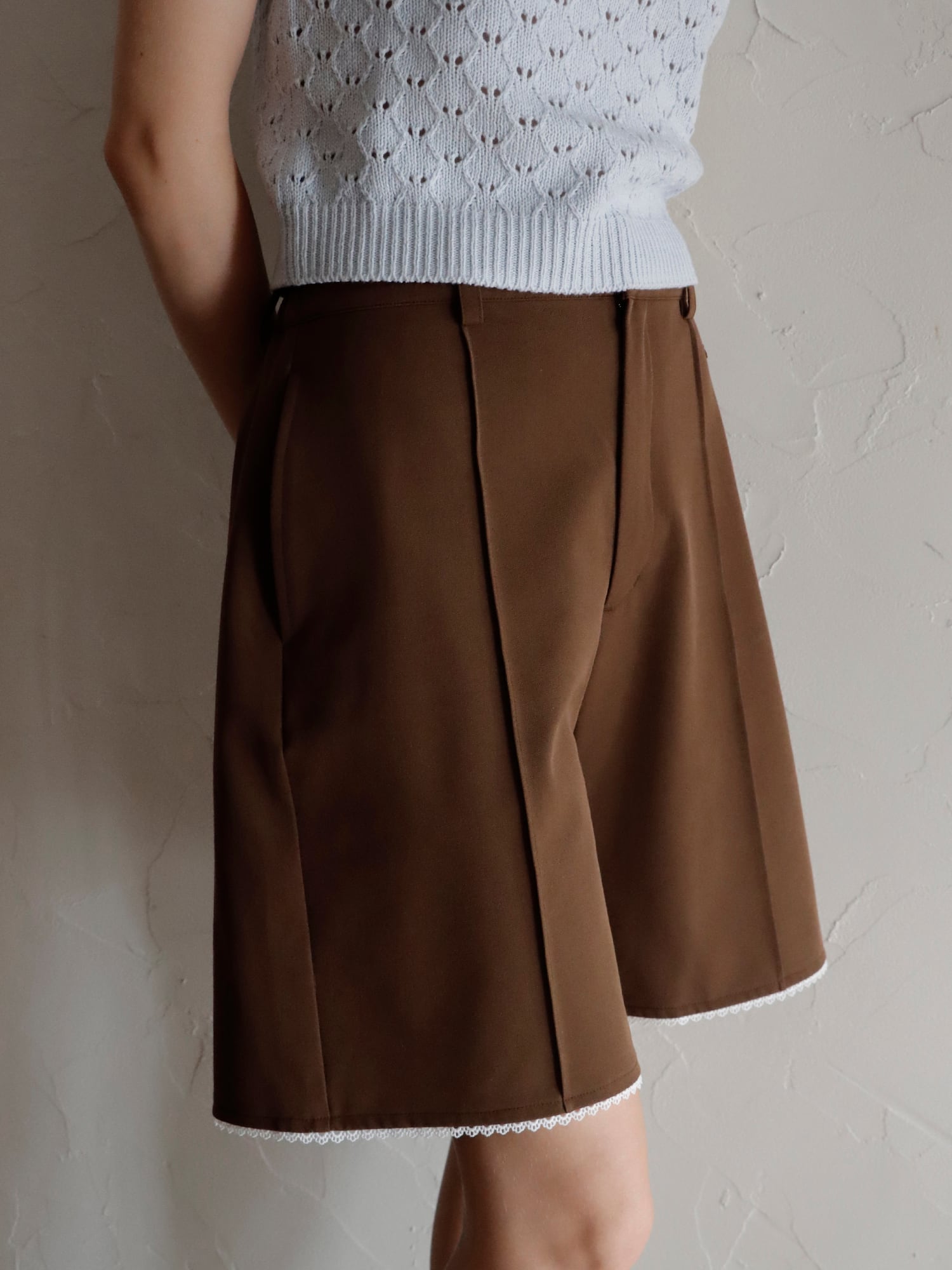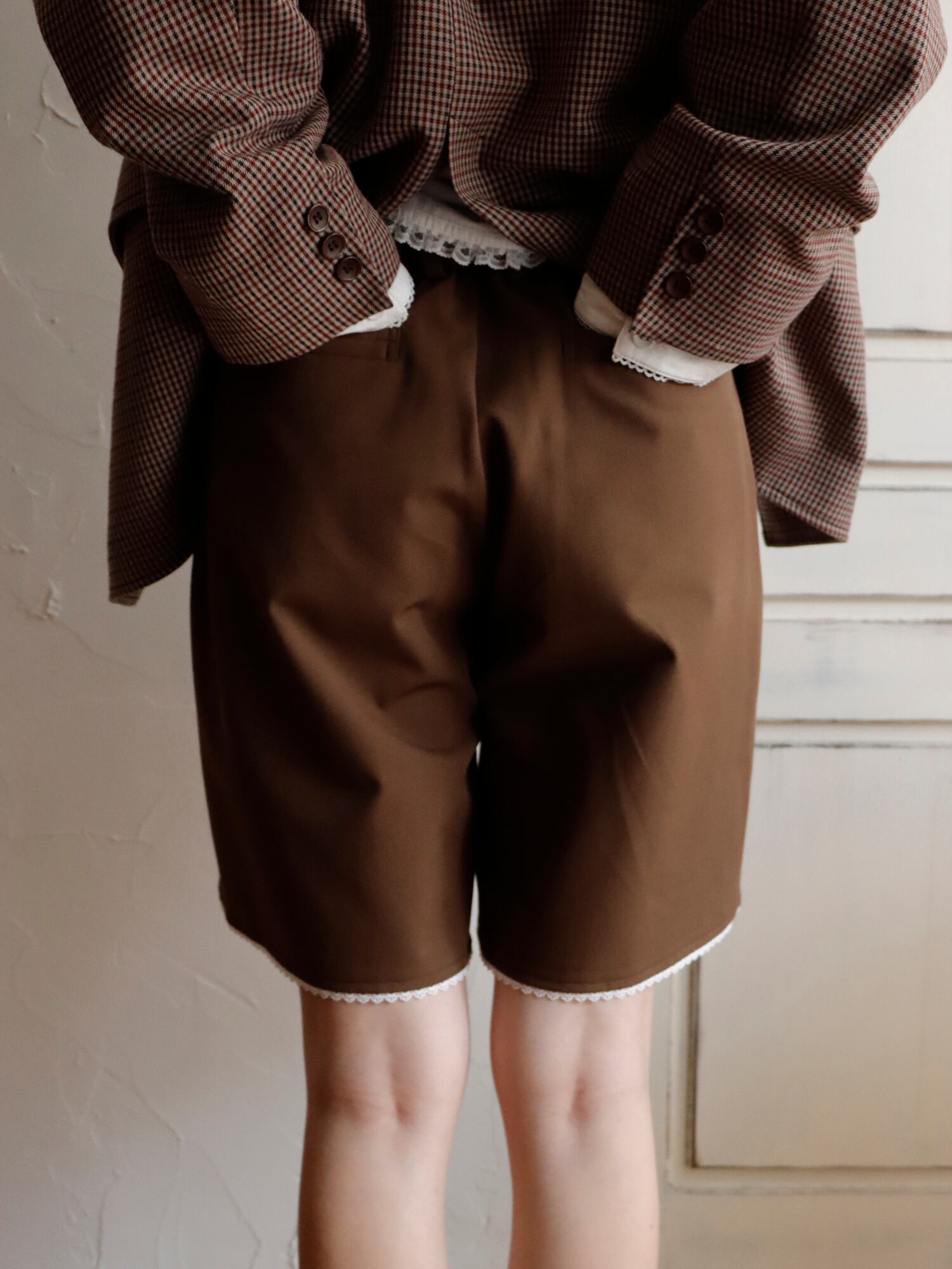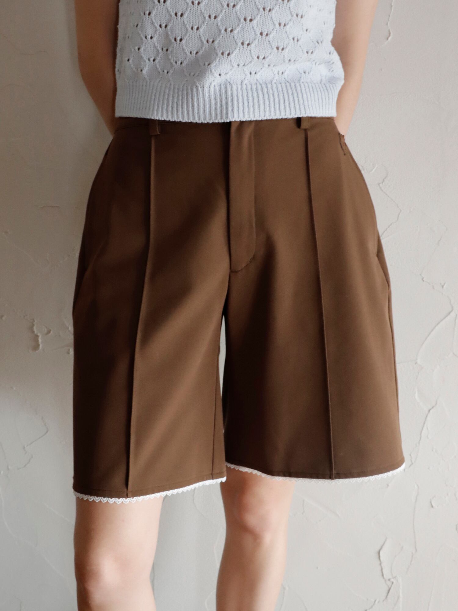 カジュアルになりがちなハーフパンツですが、しっかりとした素材感と裾のレースが上品さをプラス。ボーイッシュになりすぎず、可愛すぎるアイテムに少し飽きてきた方や、マニッシュなスタイルに挑戦したい方にぴったりです。