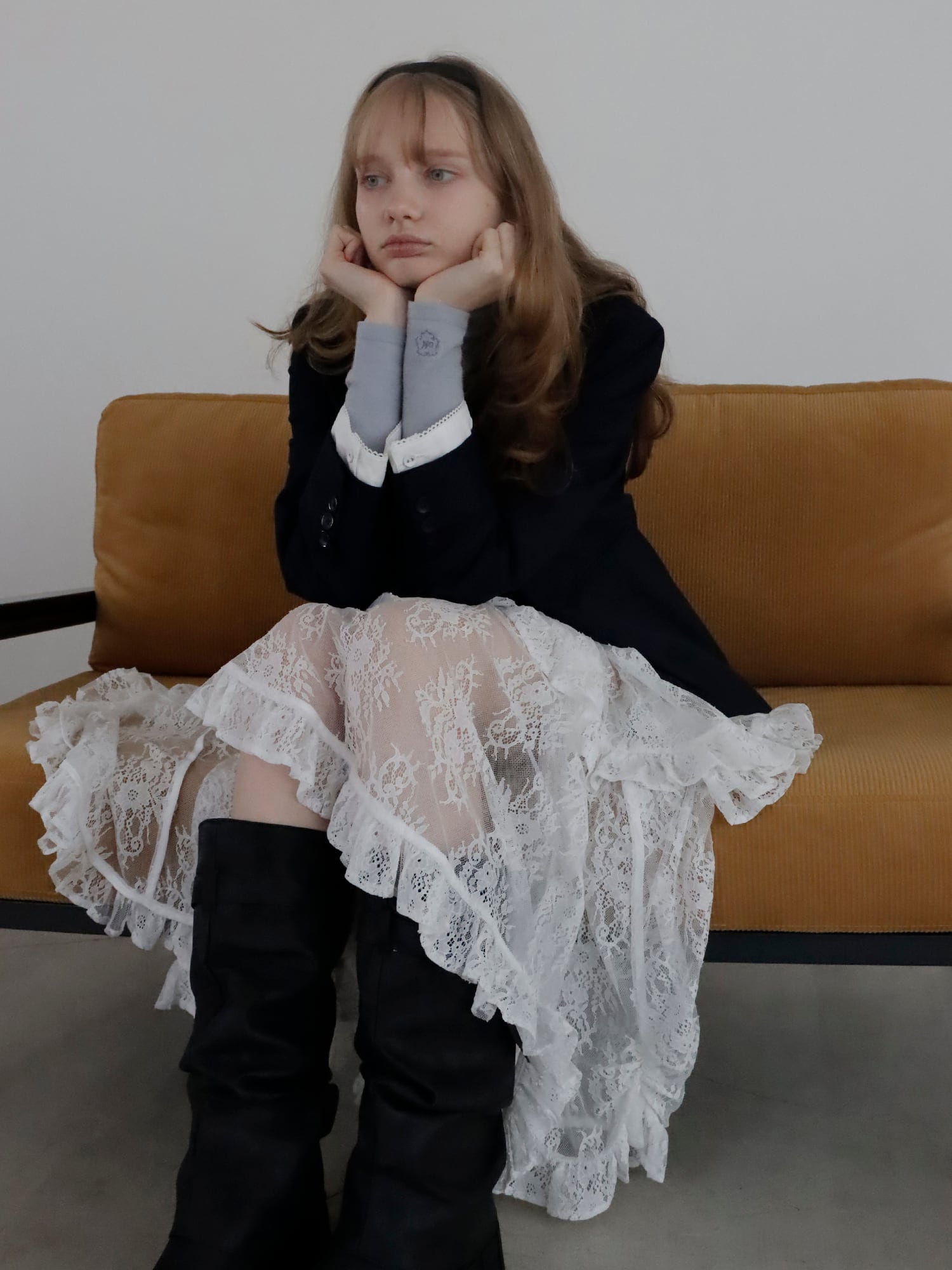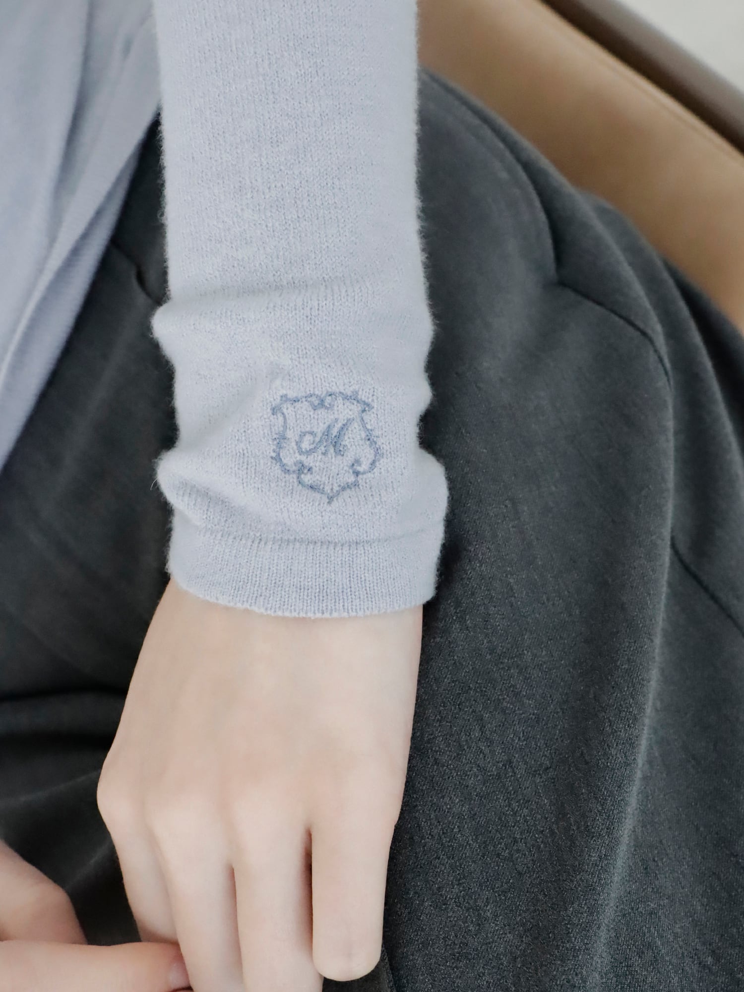 左袖には同色のエンブレム刺繍をさりげなくプラスし、シンプルな中に上品なアクセントを添えました。
