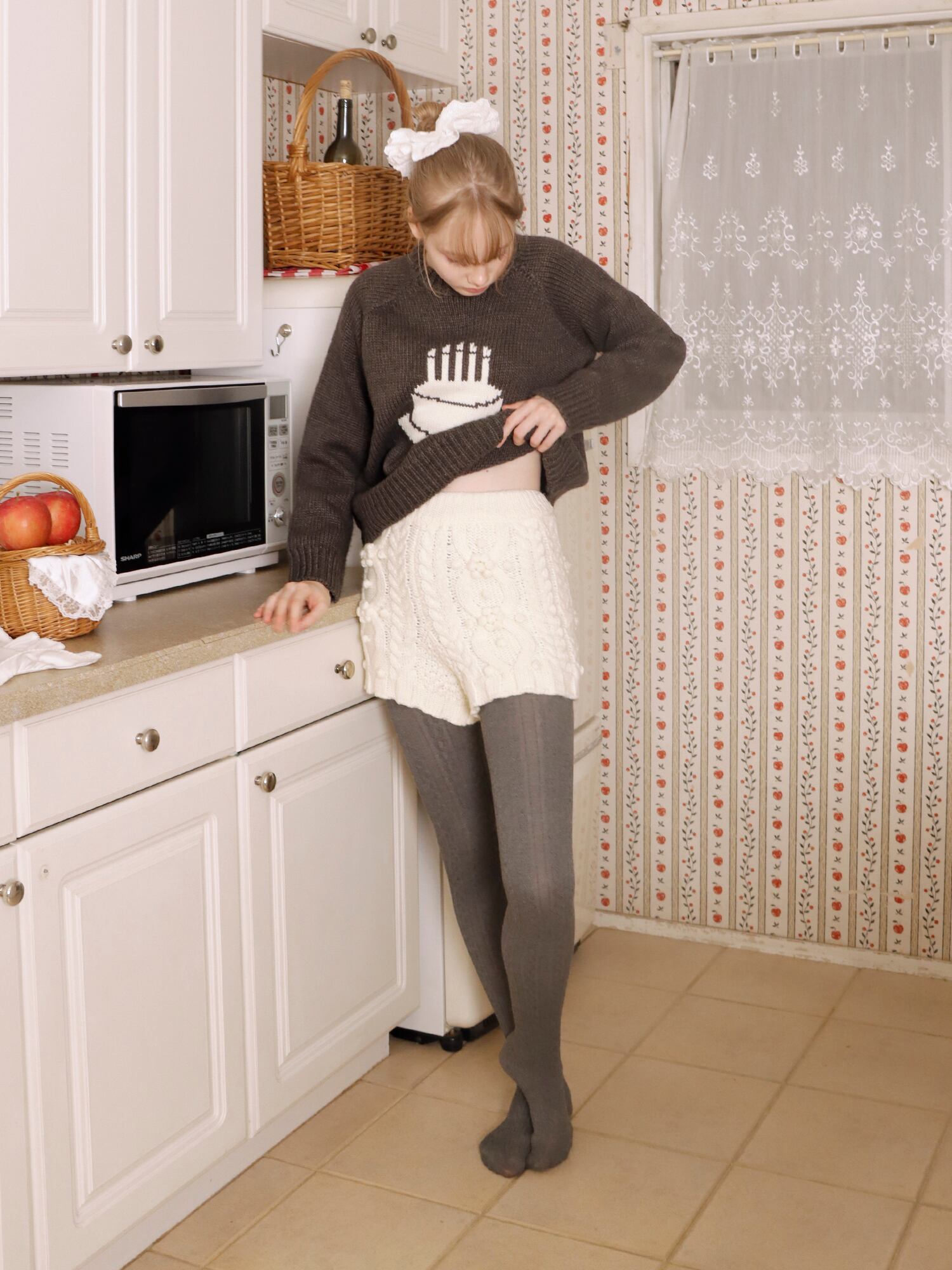 冬にぴったりのニットショートパンツ。