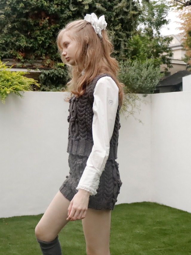 同じモチーフを使用したニットベストと合わせてセットで着ても、統一感があって可愛い印象に。もちろん単品でも存在感があり、友達同士でお揃いにしても楽しめます。
