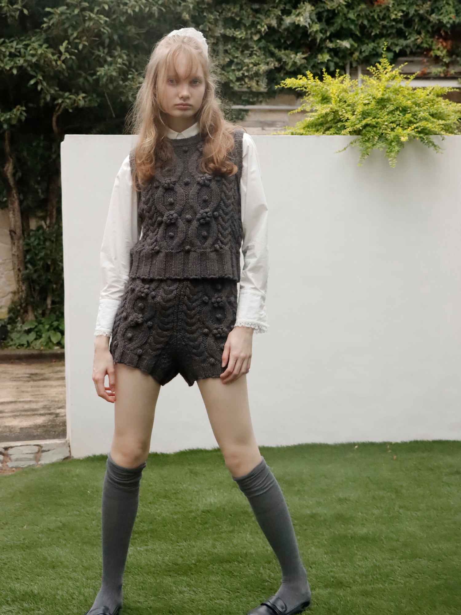 カラーは、ホワイト・ブラウン・チャコールの3色展開。どの色も冬らしさを感じさせる、季節感たっぷりのラインナップです。冬のワードローブにプラスしたい、とっておきのニットショートパンツです。