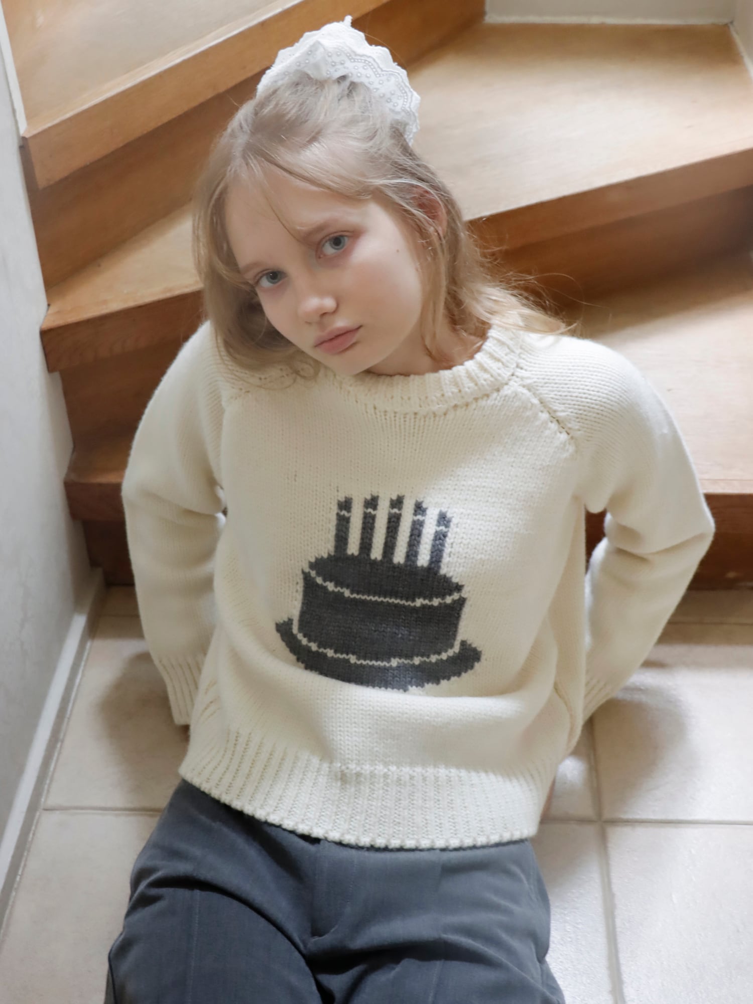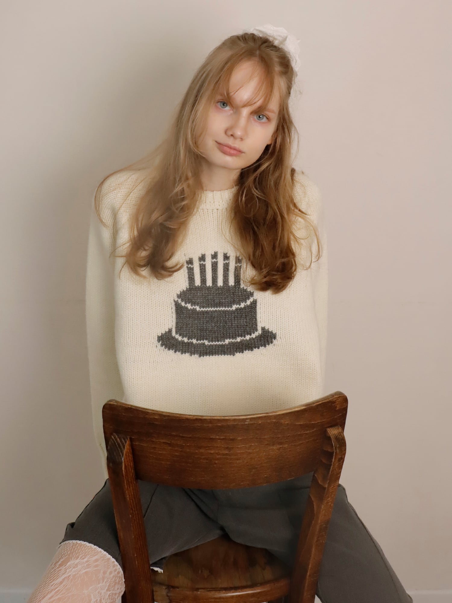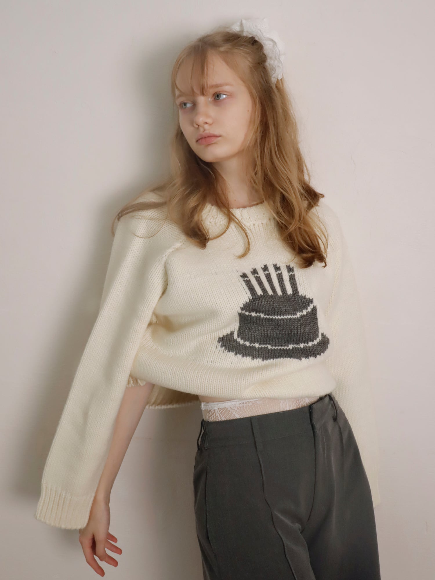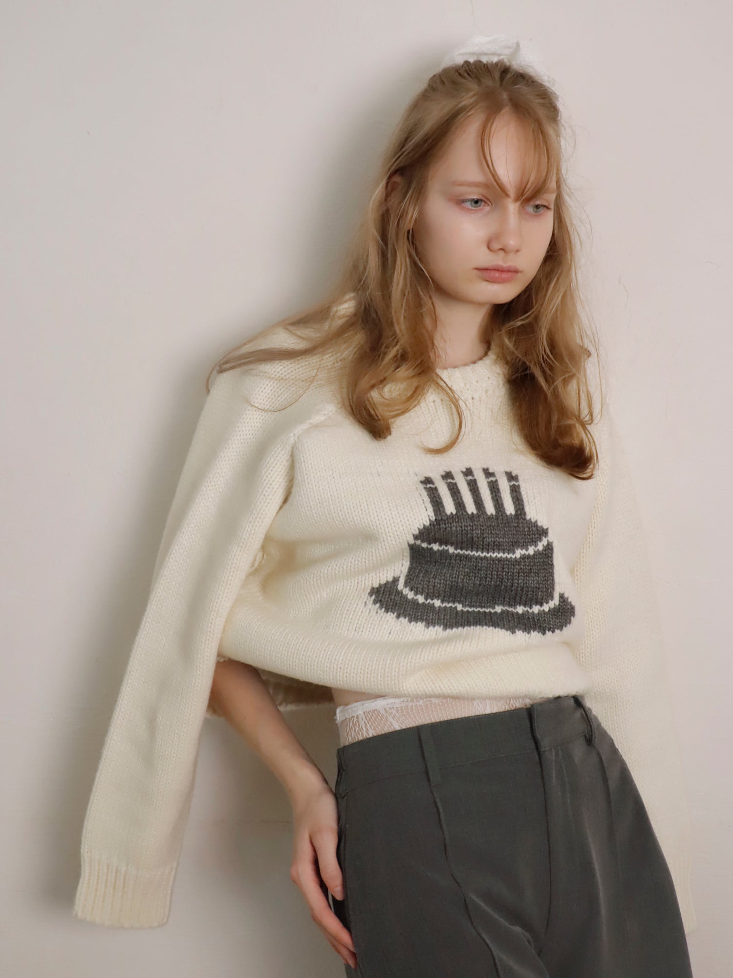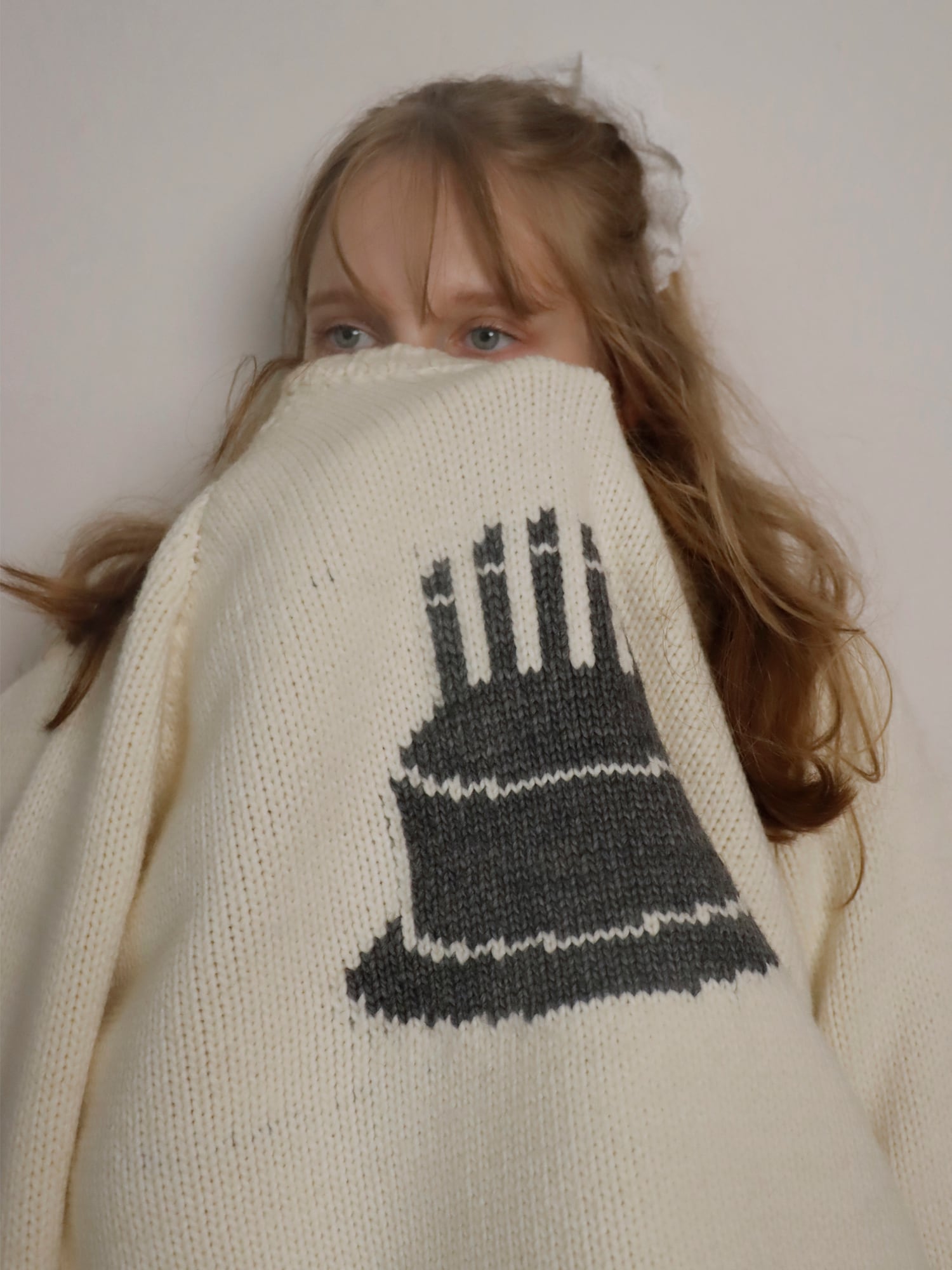 ケーキをモチーフにした厚手のニット。