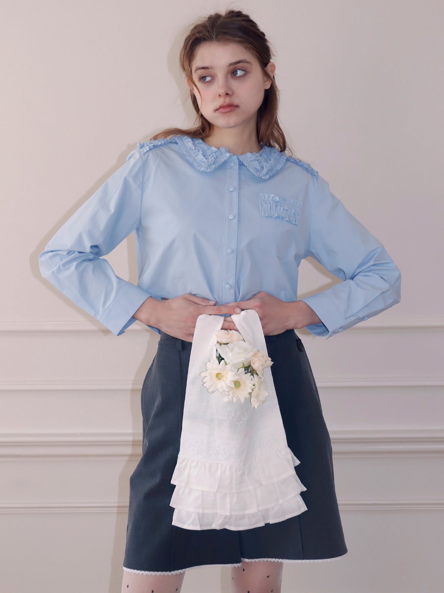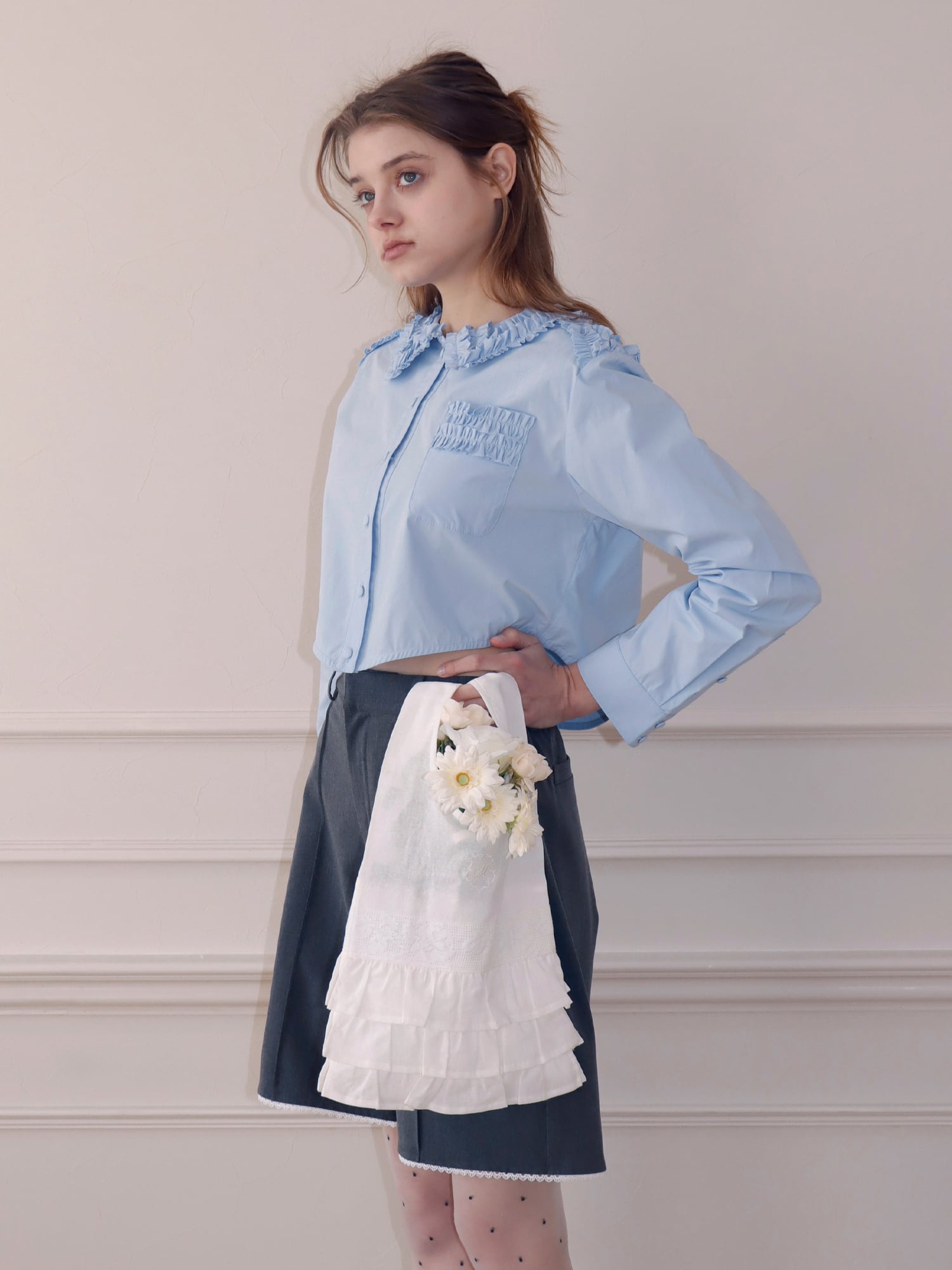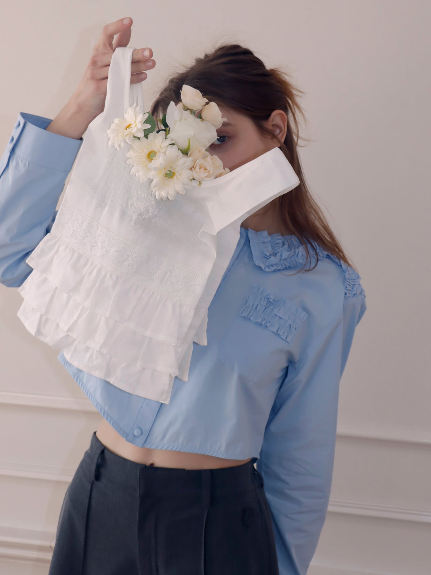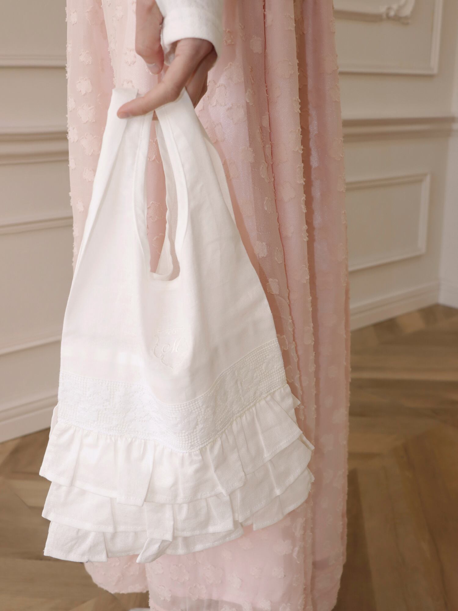 フリルとレースを贅沢に使用し、持つだけでコーディネートのワンポイントに。