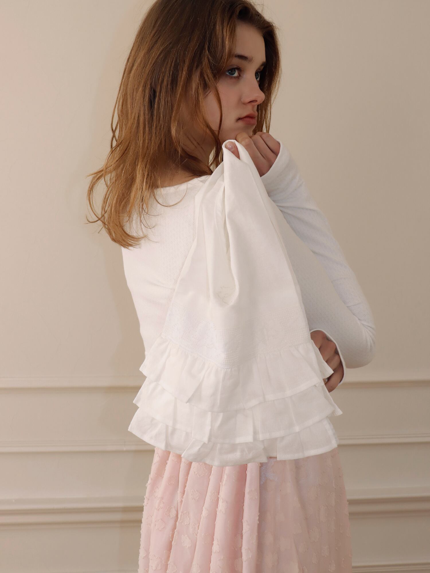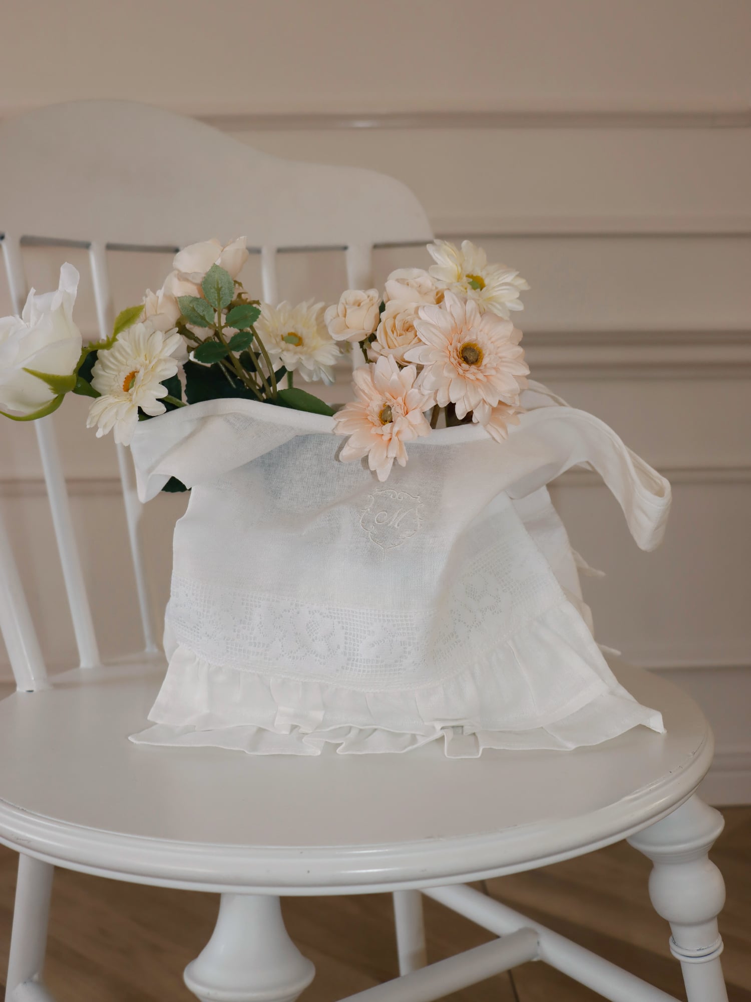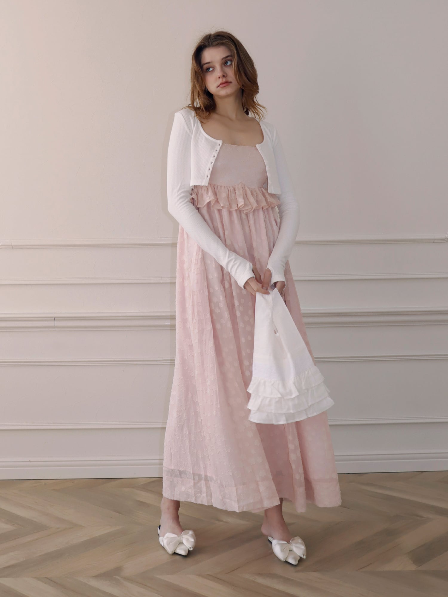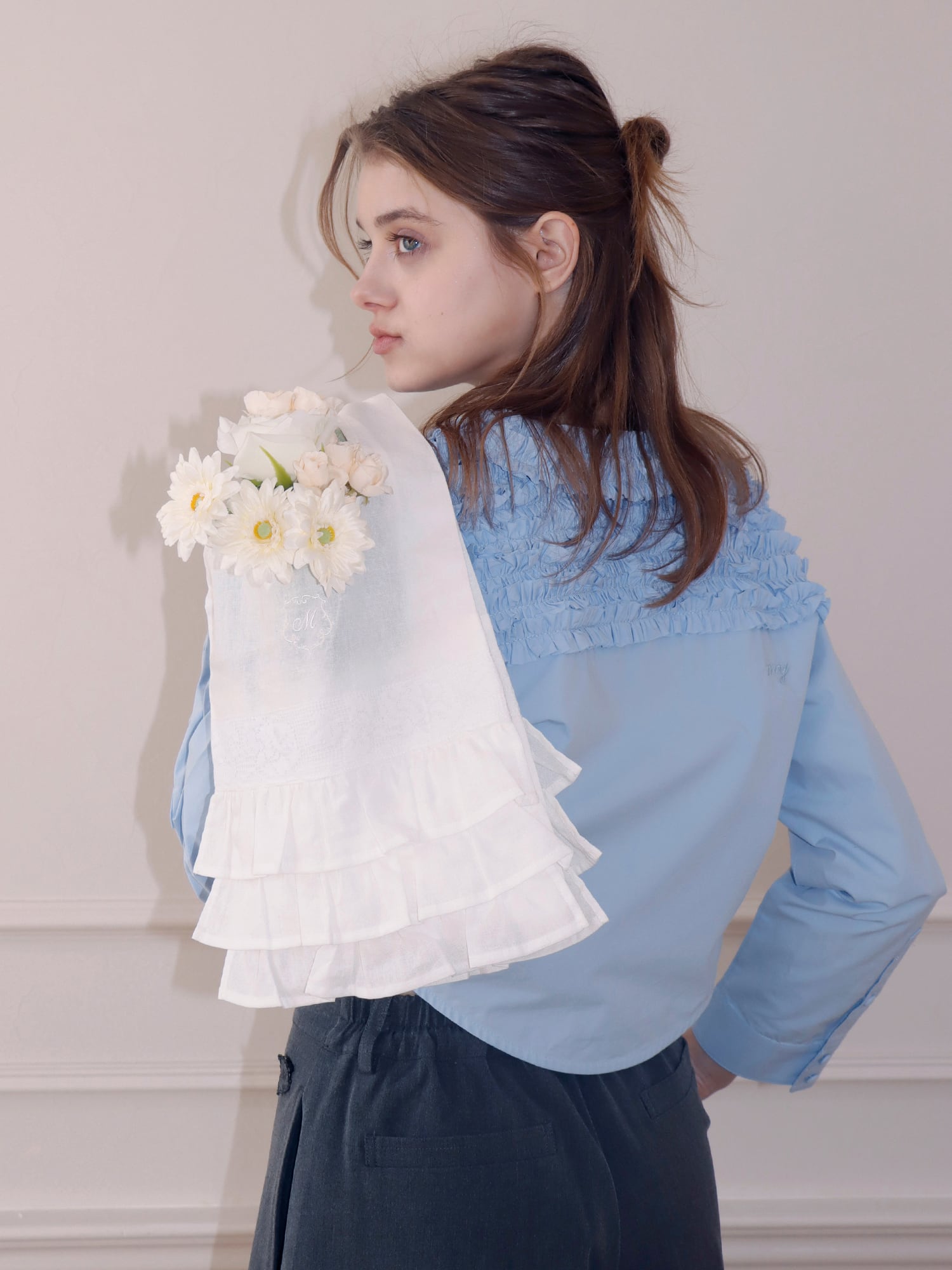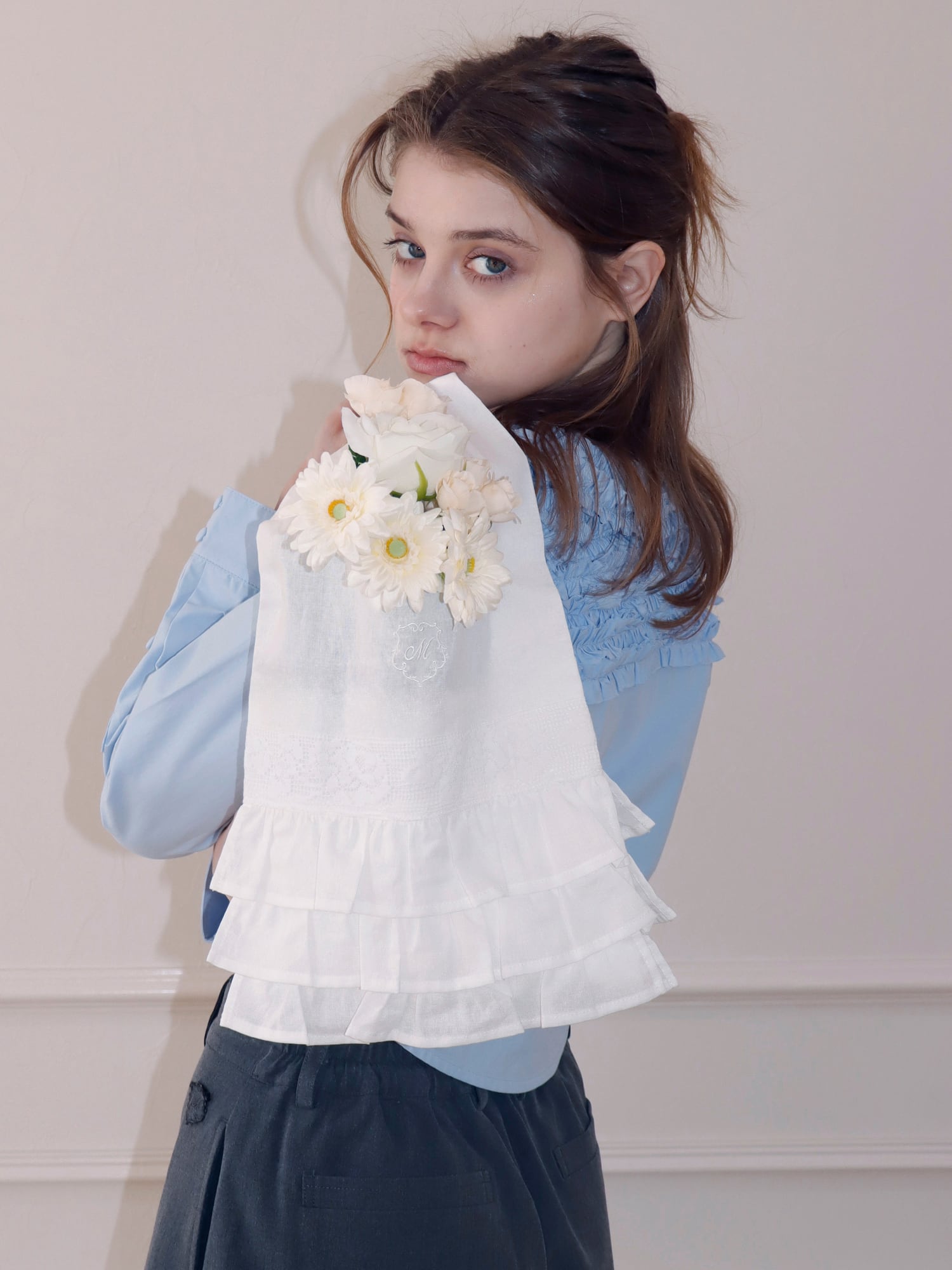 フリルとレースを贅沢に使用し、持つだけでコーディネートのワンポイントに。