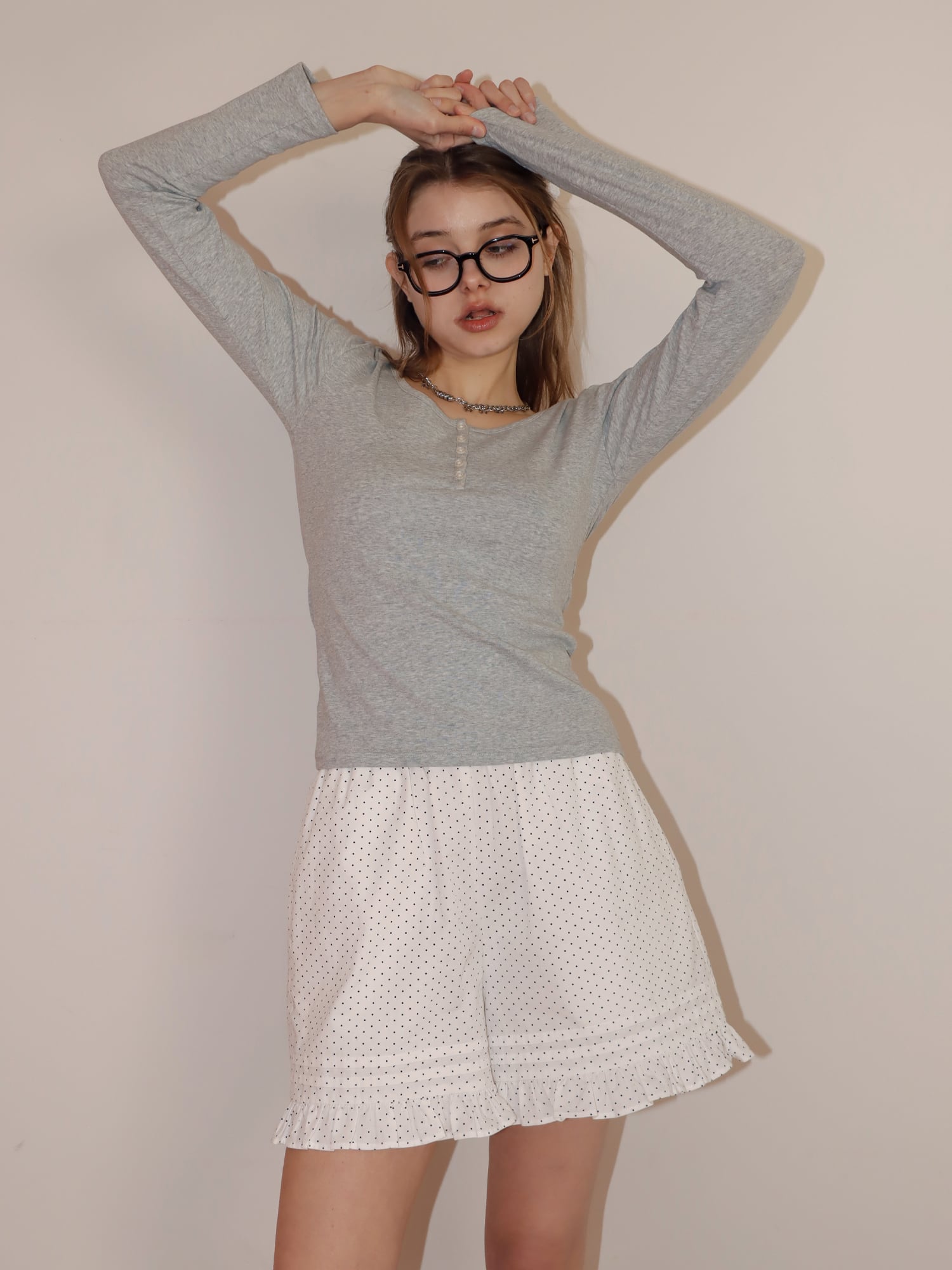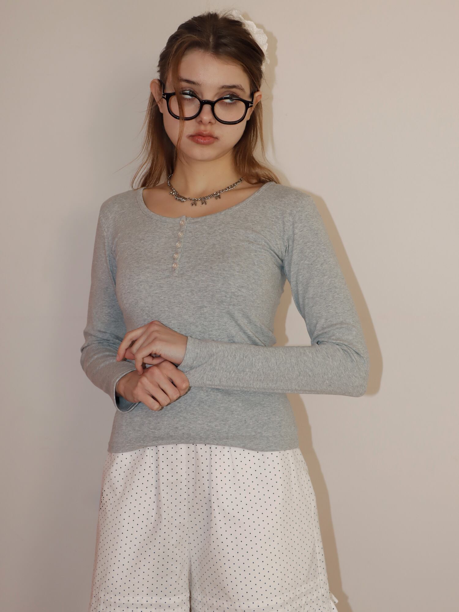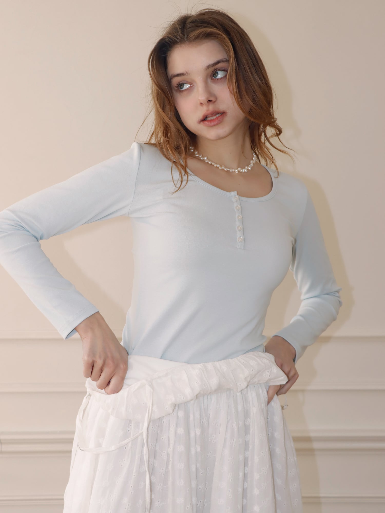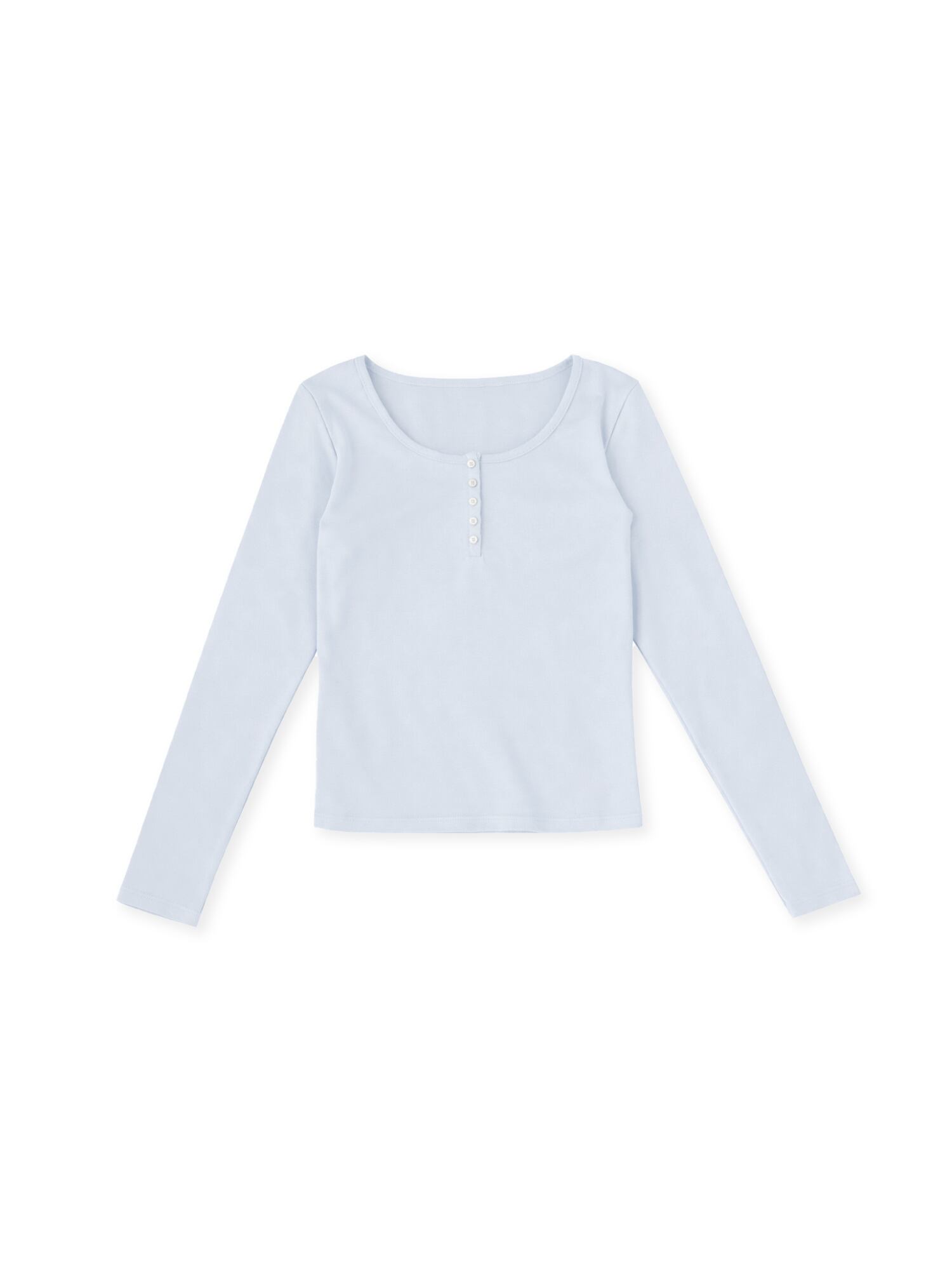 胸元は、ほどよく開いたヘンリーネック仕様。