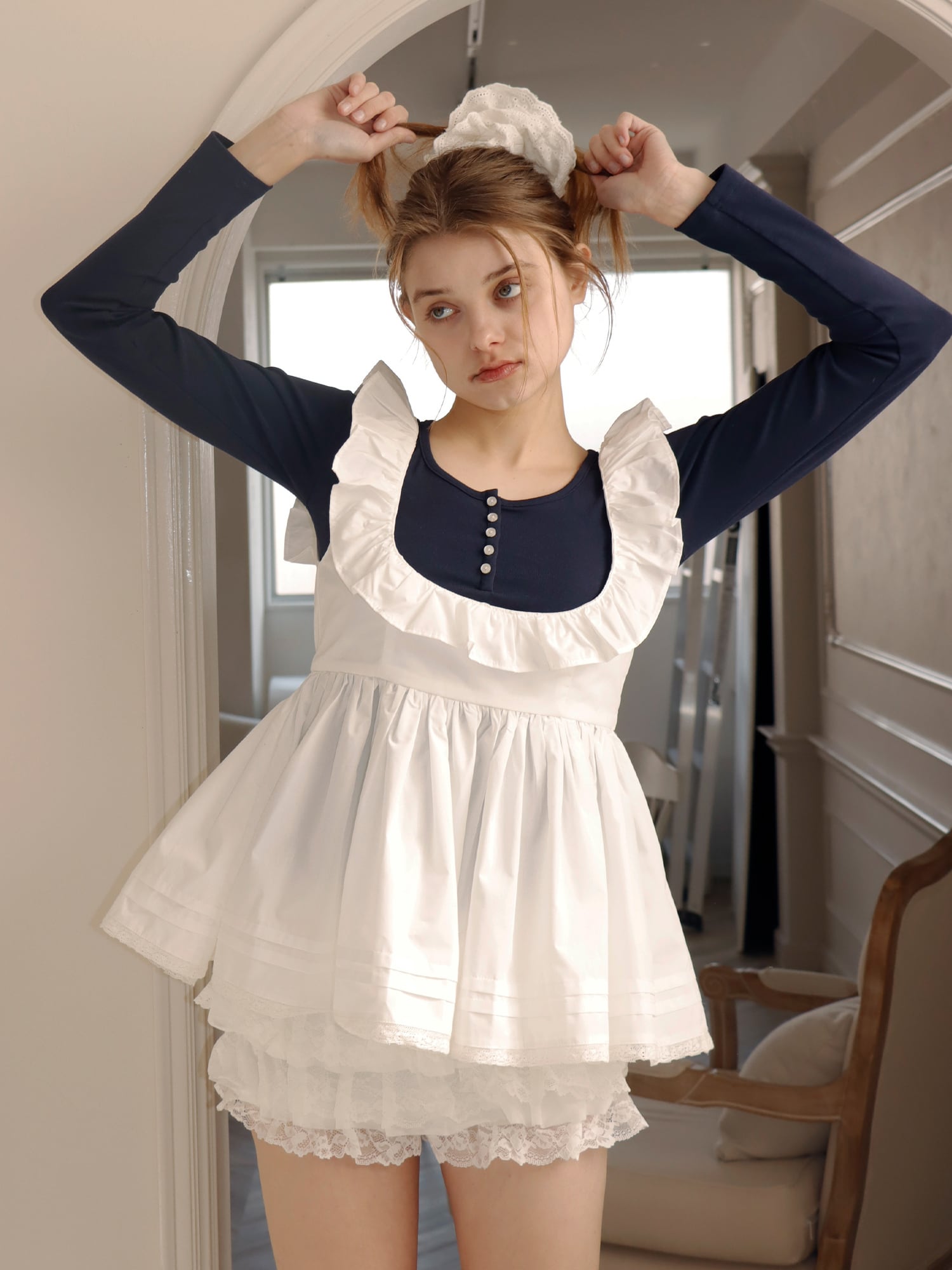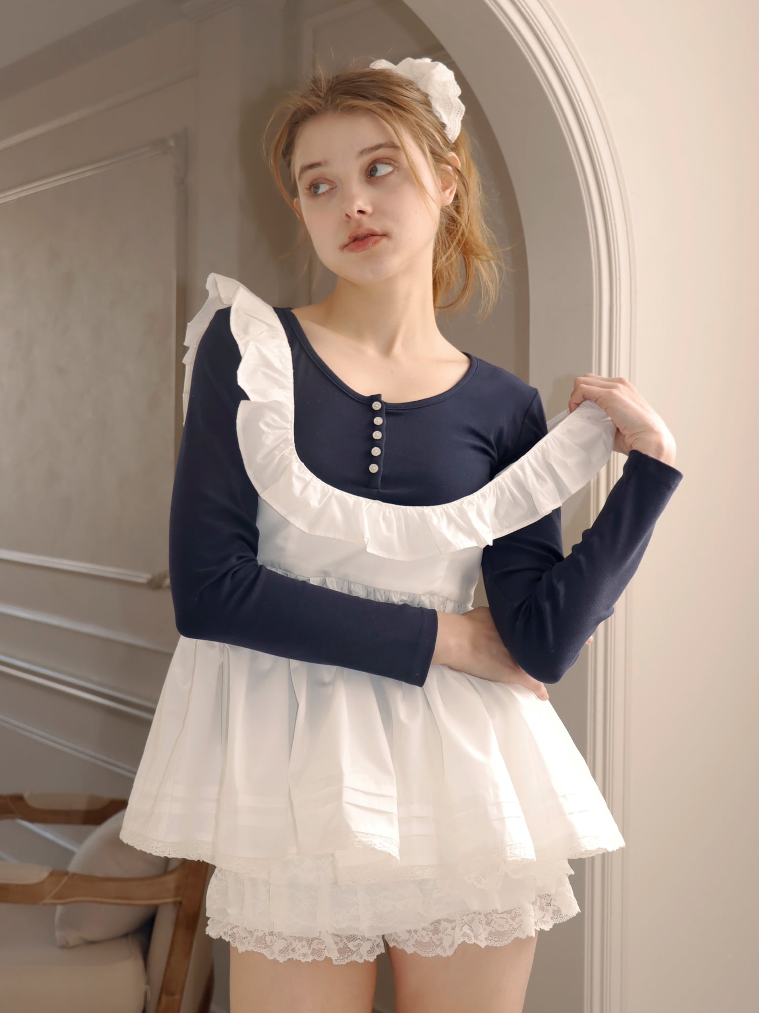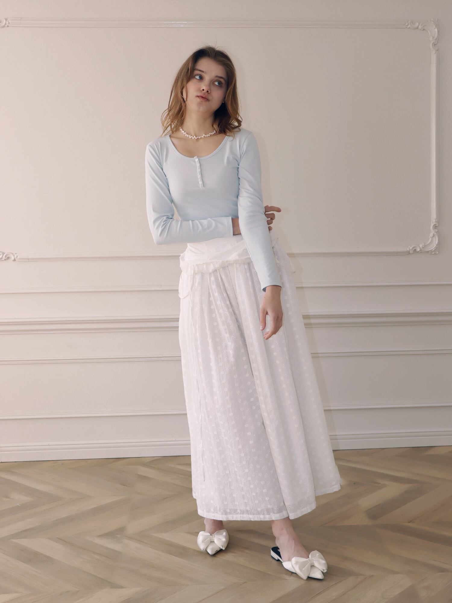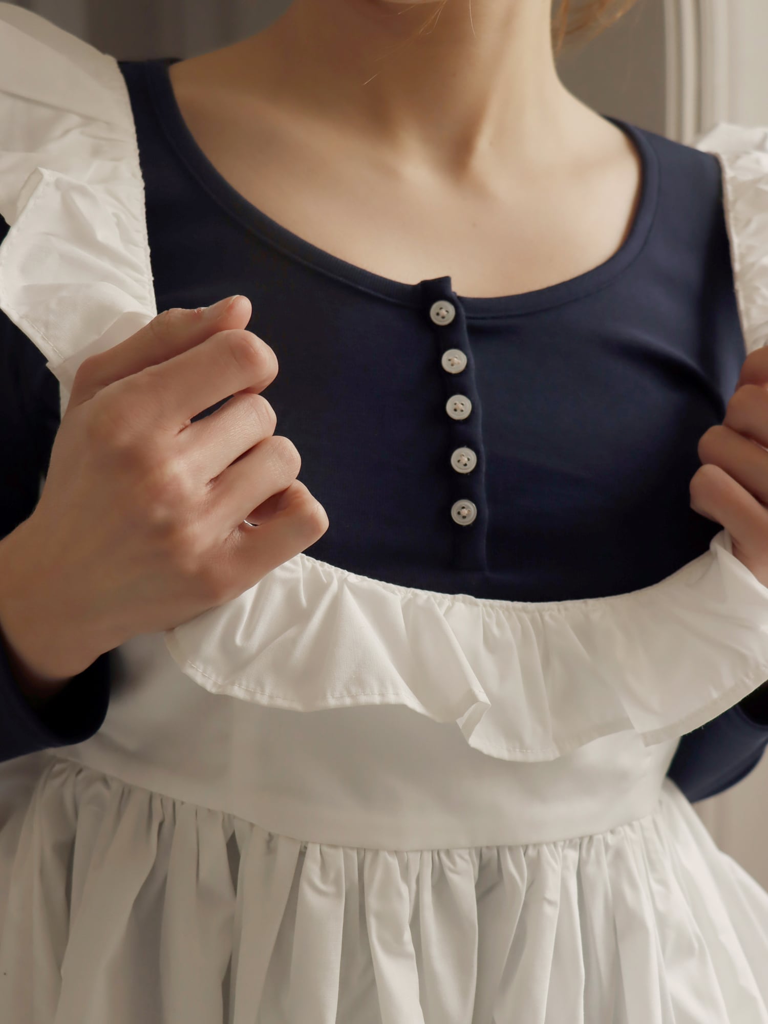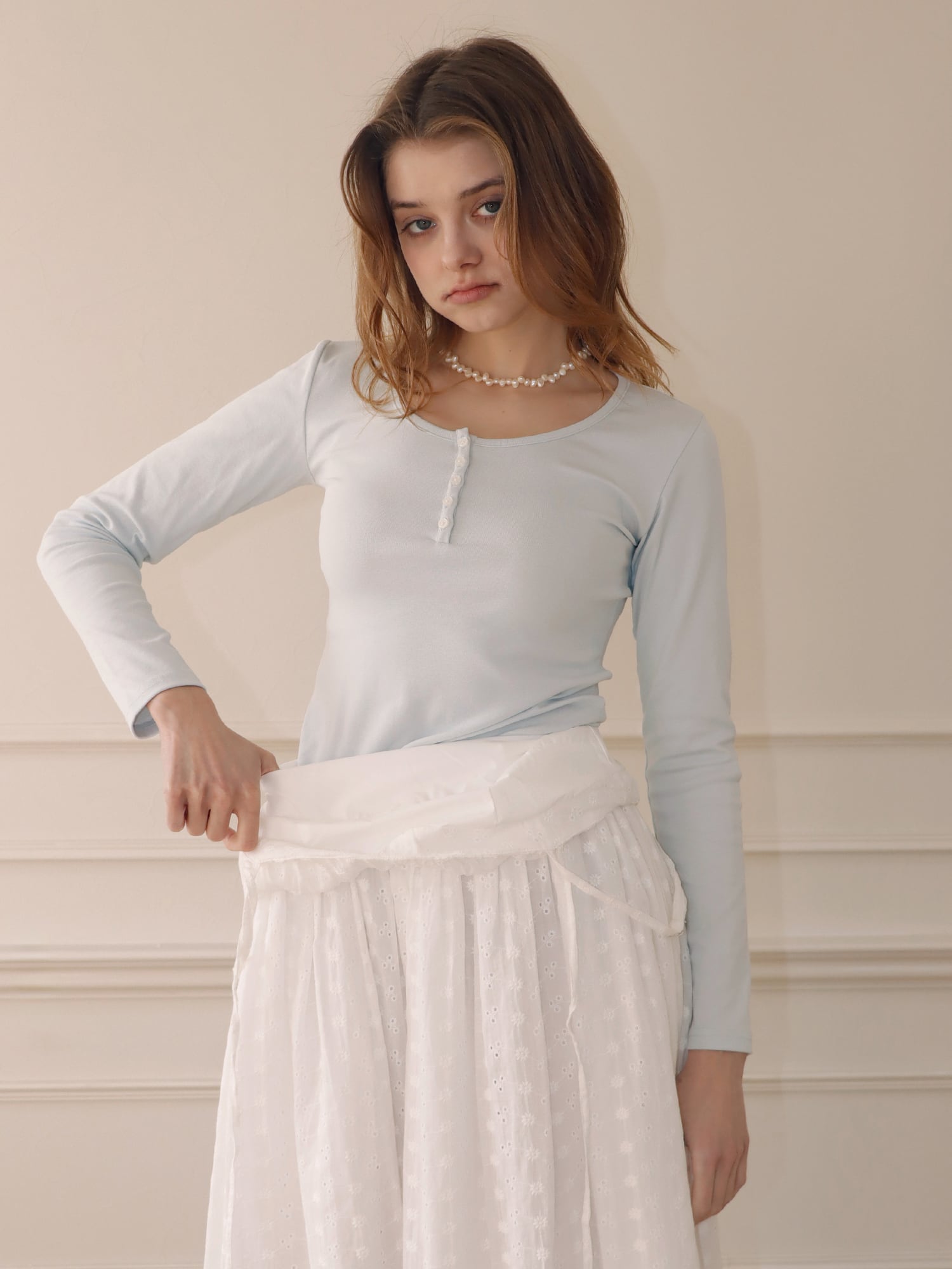 胸元は、ほどよく開いたヘンリーネック仕様。