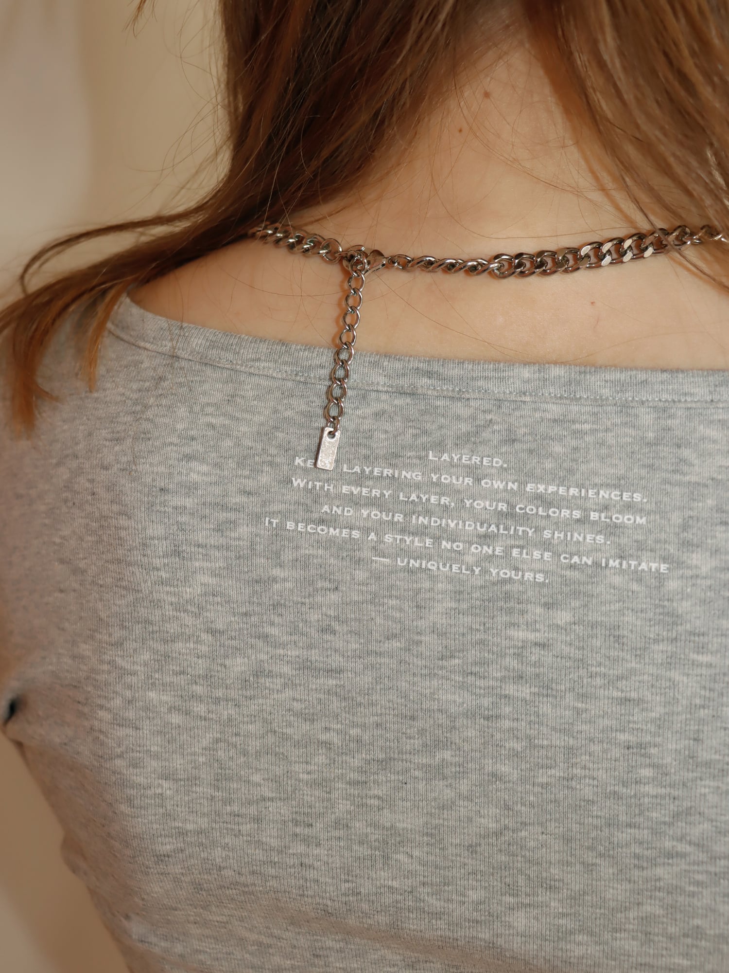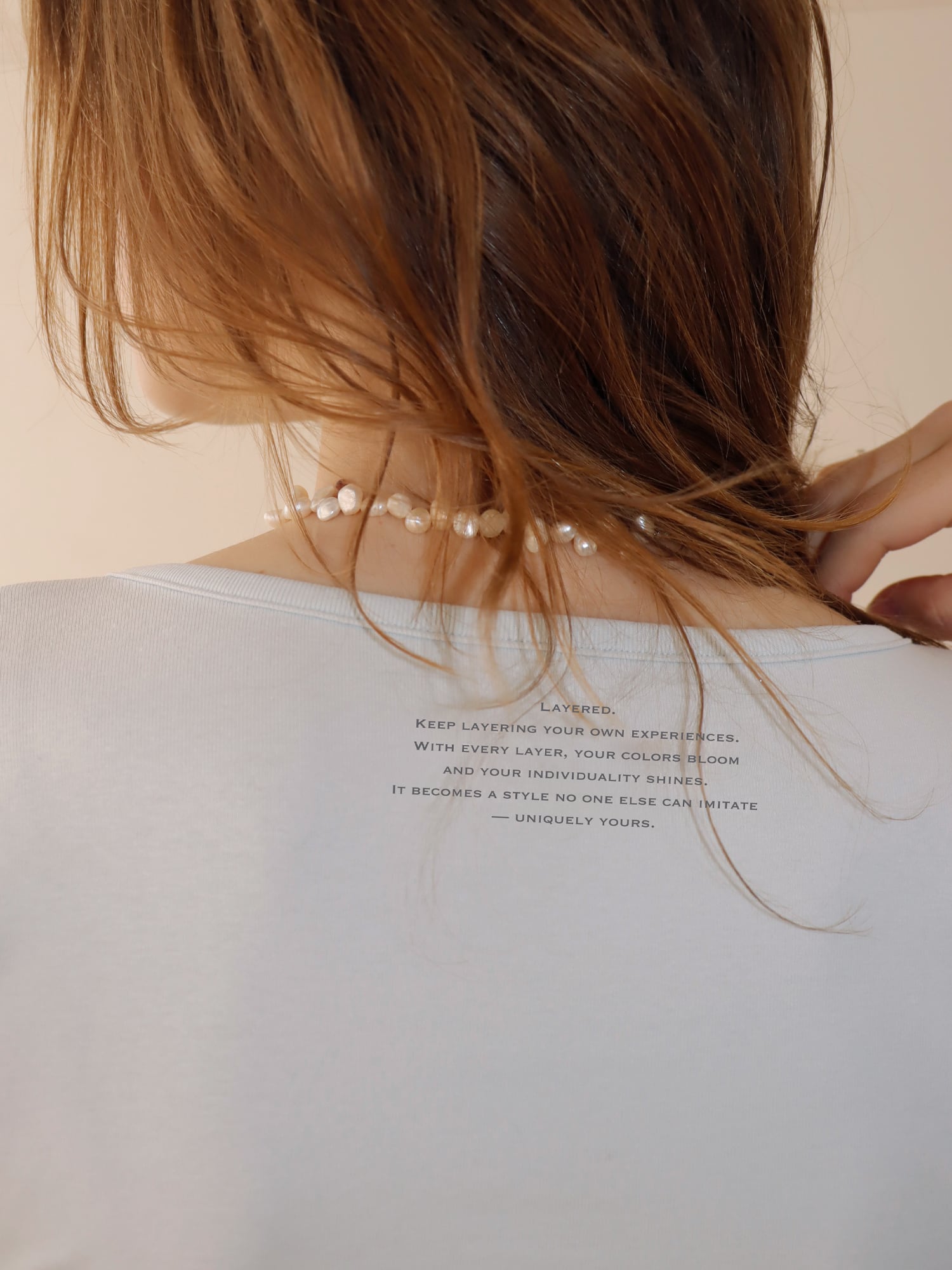 無地のTシャツにありがちな物足りなさを感じさせず、アクセサリーが映えるデザインに仕上げました。