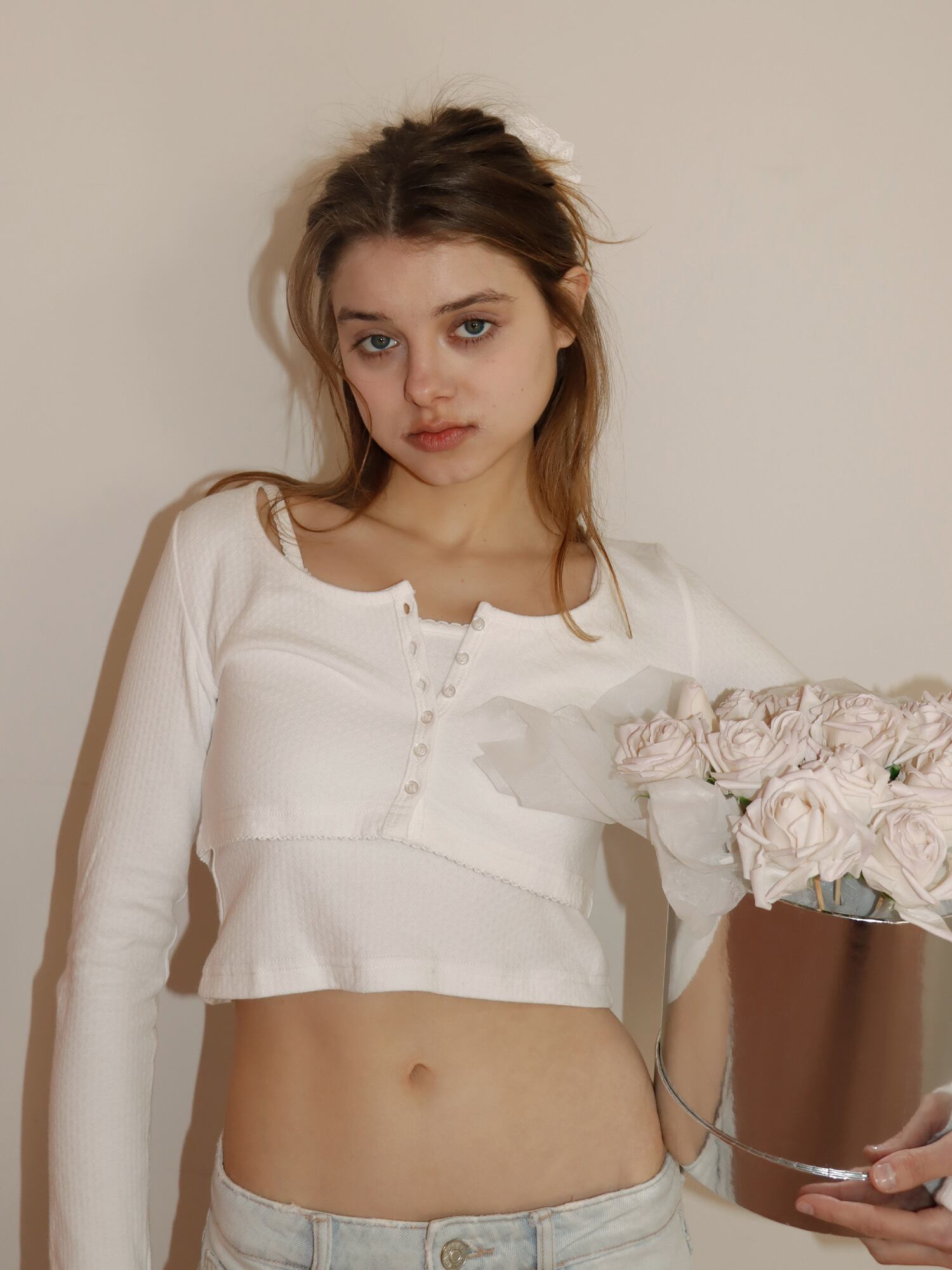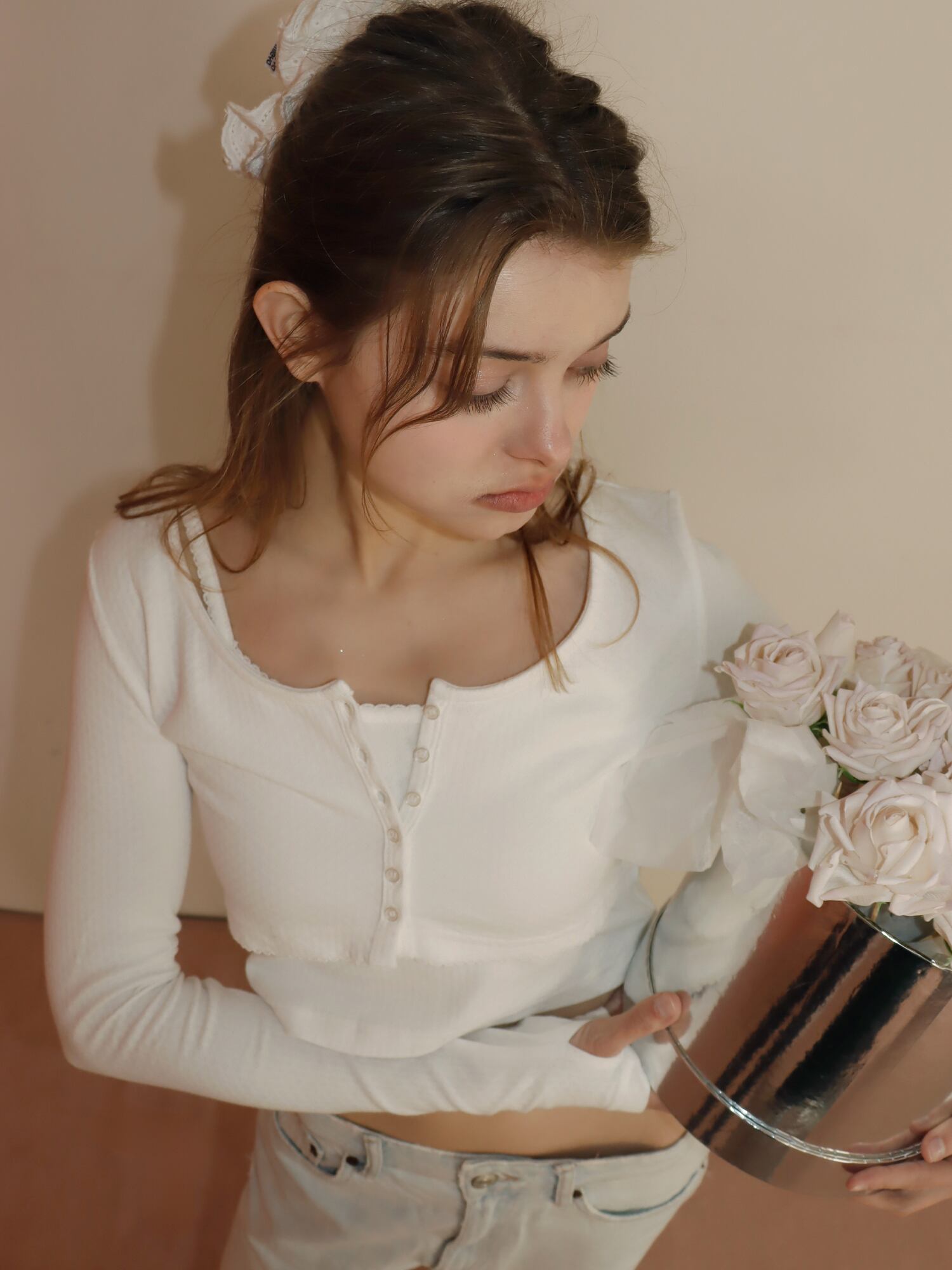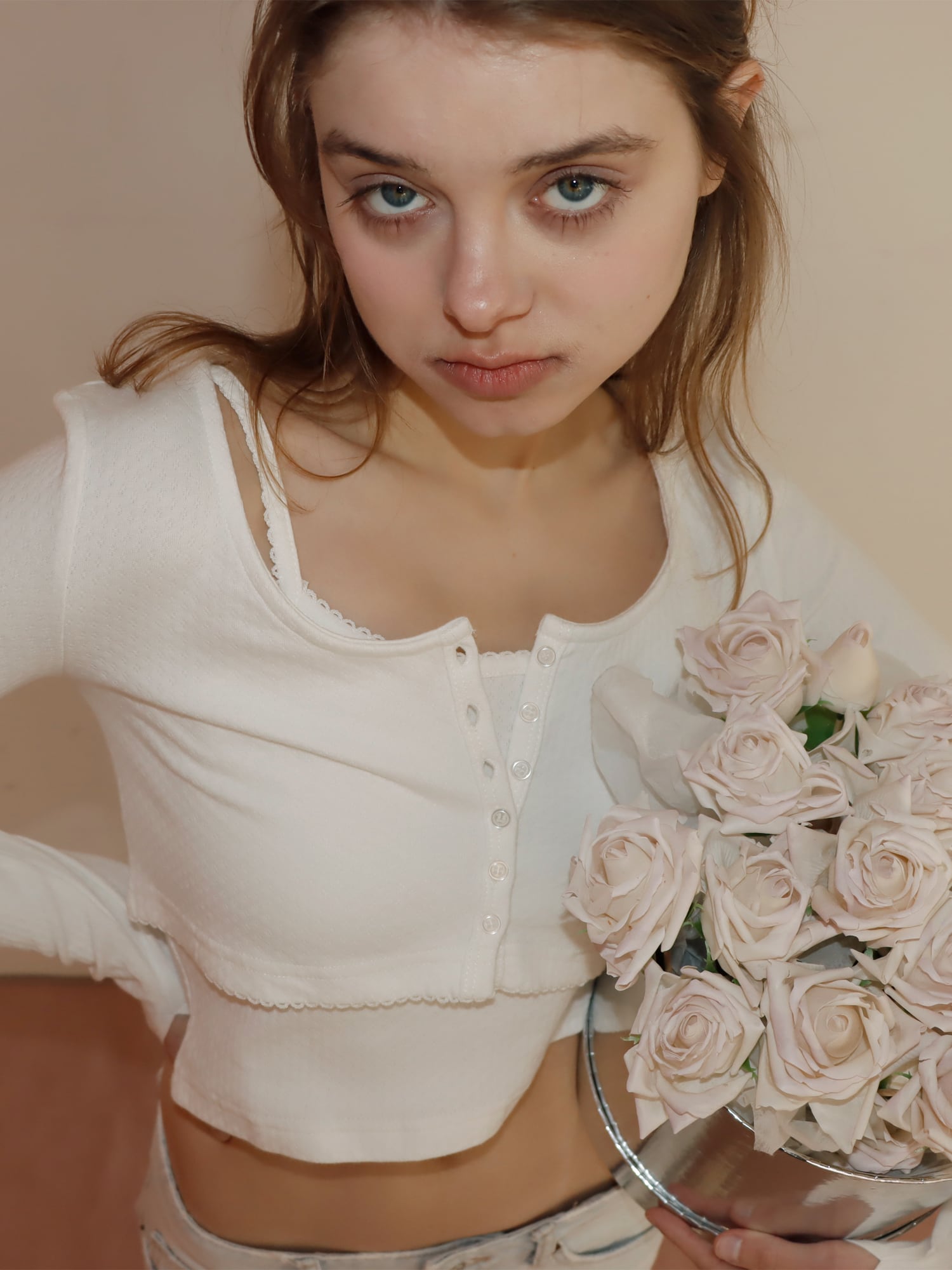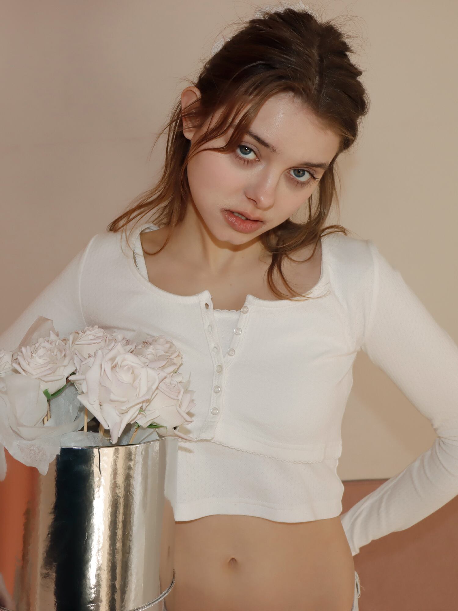 裾には細かなスカラップデザインを施し、さりげない甘さをプラス。