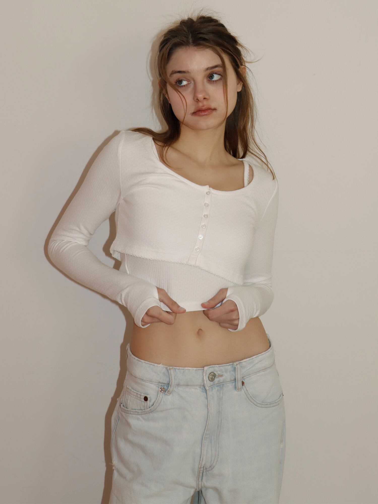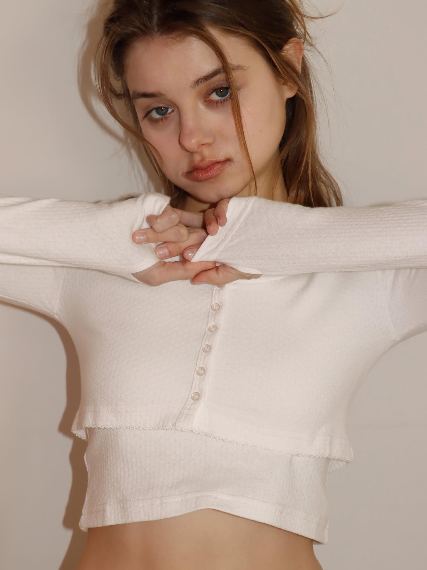キャミソール、カーディガンともにクロップド丈に仕上げており、スタイルアップ効果も抜群。コンパクトなバランスで、ハイウエストボトムやワンピースとの相性も良く、幅広いコーディネートに活躍します。