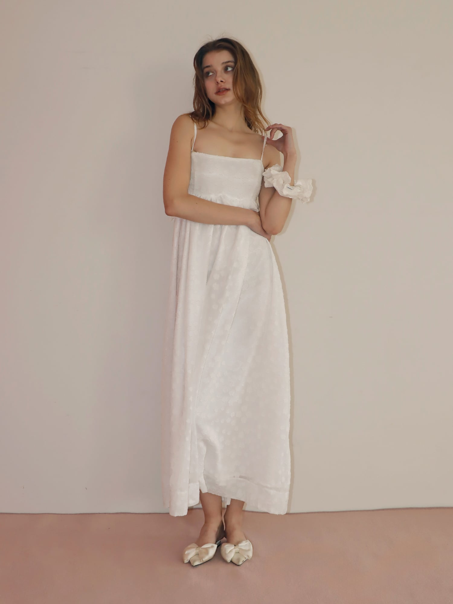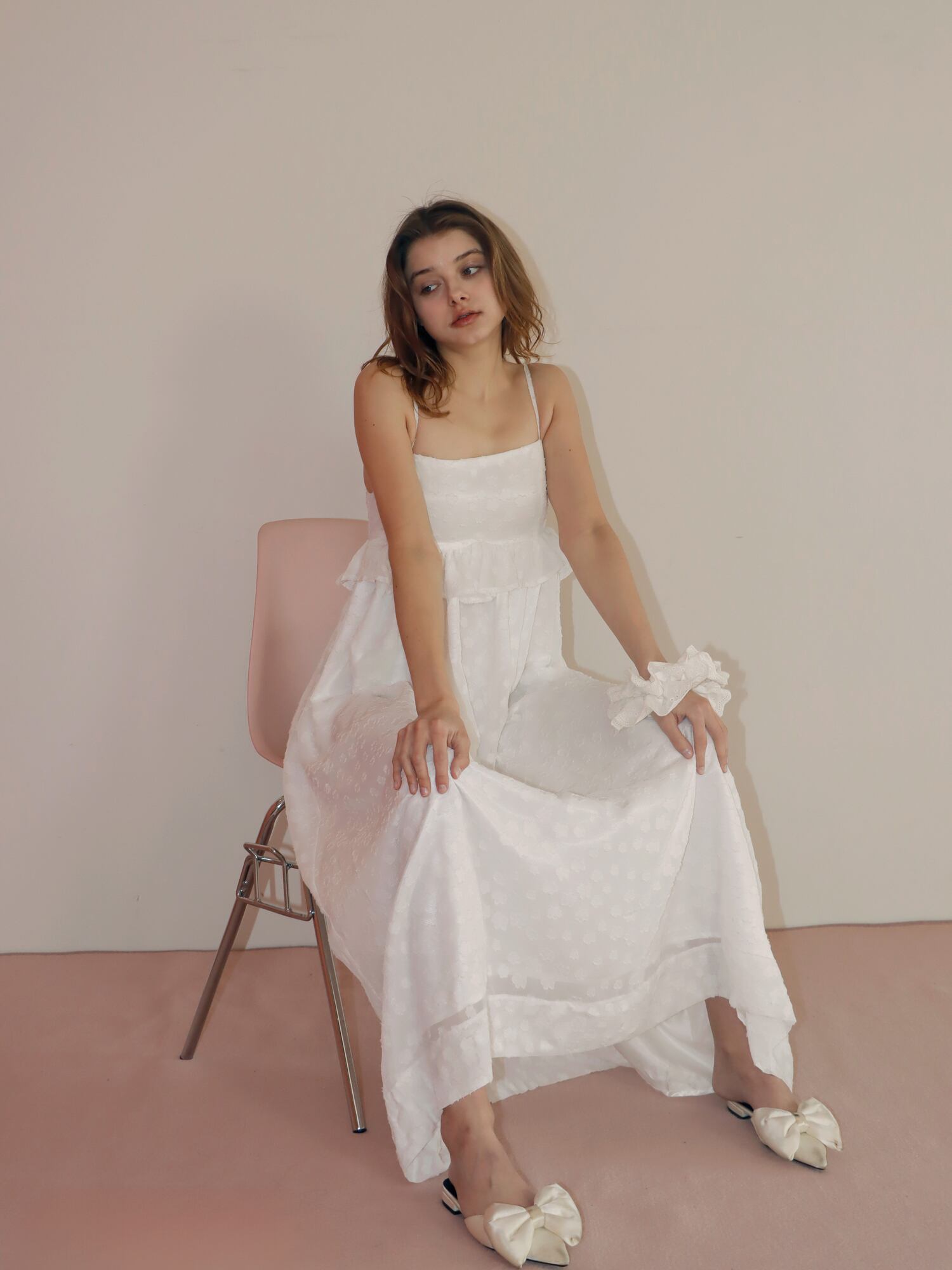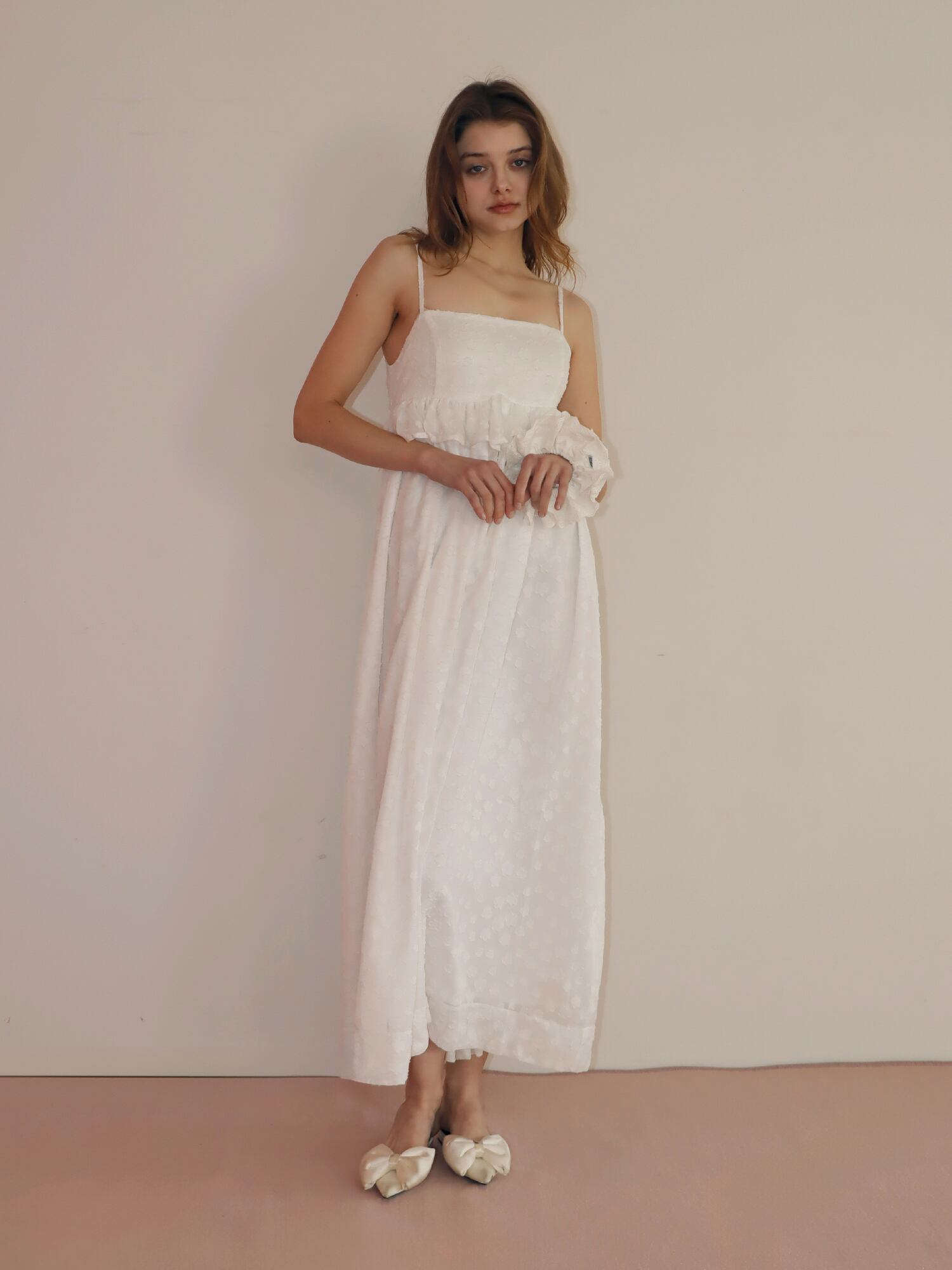 凹凸のある生地を使用することで、甘くなりすぎず、上品な雰囲気に仕上げました。