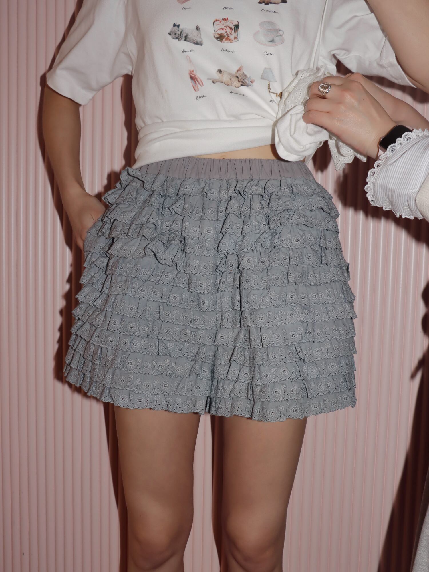 まるでパニエのような可愛らしいフリルショートパンツ。