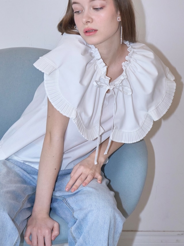 存在感のあるフリルカラーはコーディネートの主役間違いなしです。