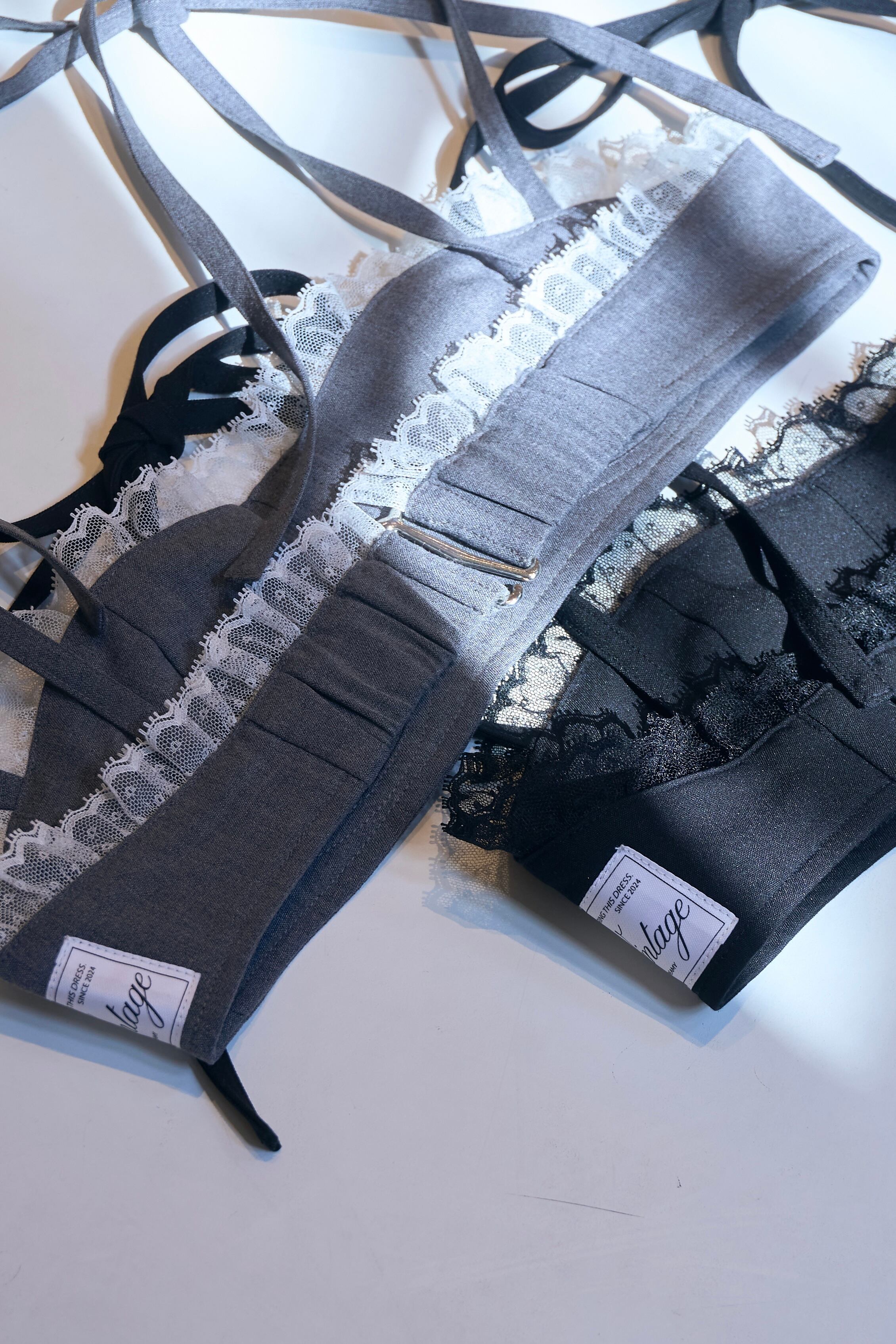 トレンドのランジェリーレイヤードが出来ちゃうビスチェが登場♡後ろにゴムが入っているため、楽に着用していただけます。フックを引っ掛けるタイプなので外れにくくなっているのも安心ポイント。古着でよく見るランジェリーをイメージし端にレースを付けました。